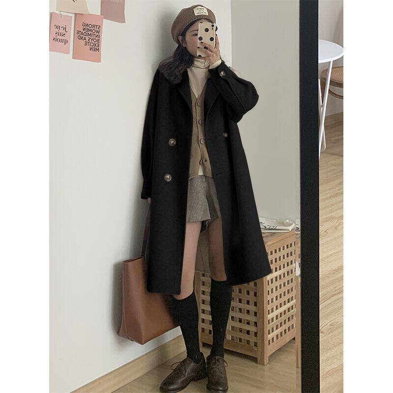 2022 autumn and winter new woolen coat women's small Japanese style woolen coat mid-length Hepburn style thickened