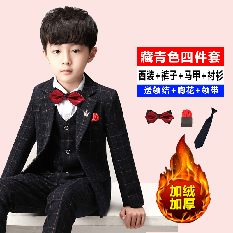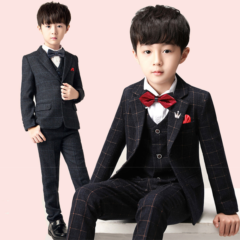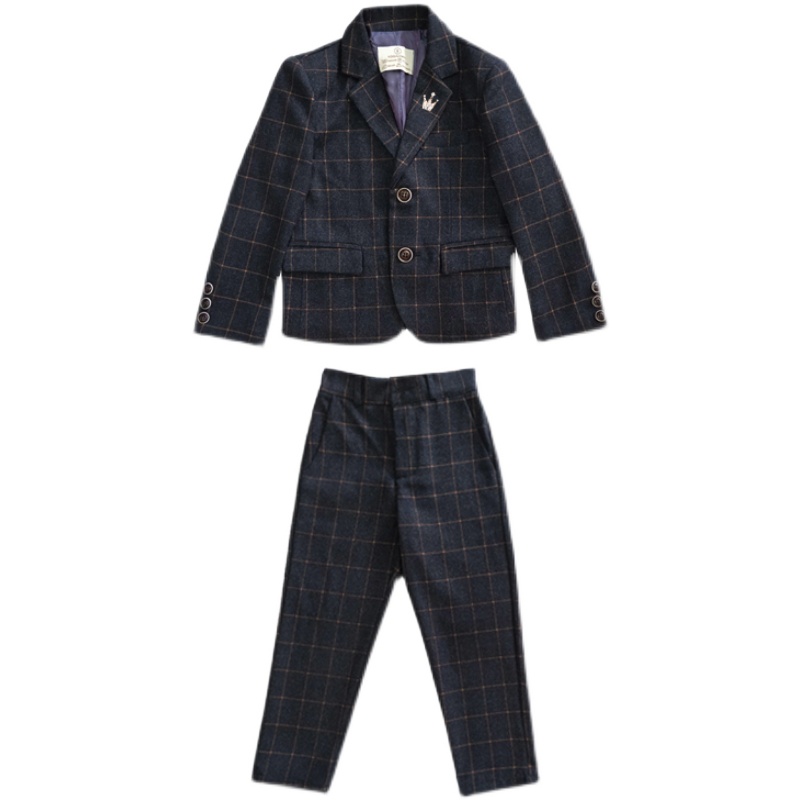 Gray plaid 2-piece set Gray plaid 3-piece set (excluding shirt) Gray plaid 4-piece set (including shirt) Navy blue plaid 3-piece set (excluding shirt) Navy blue plaid 4-piece set (including shirt) Blue plaid 3-piece set