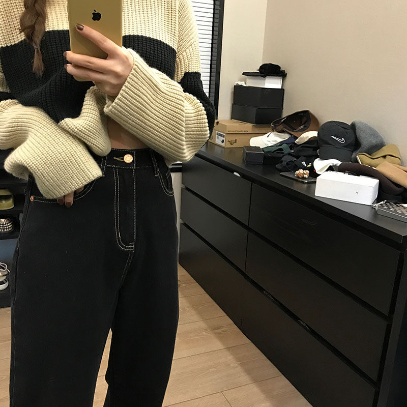 Wang Xiaofei's shop black jeans spring new high waist straight legs wide legs loose leisure and thin pants