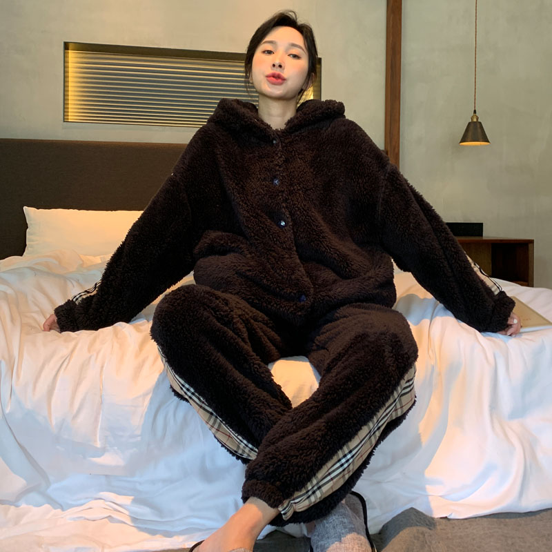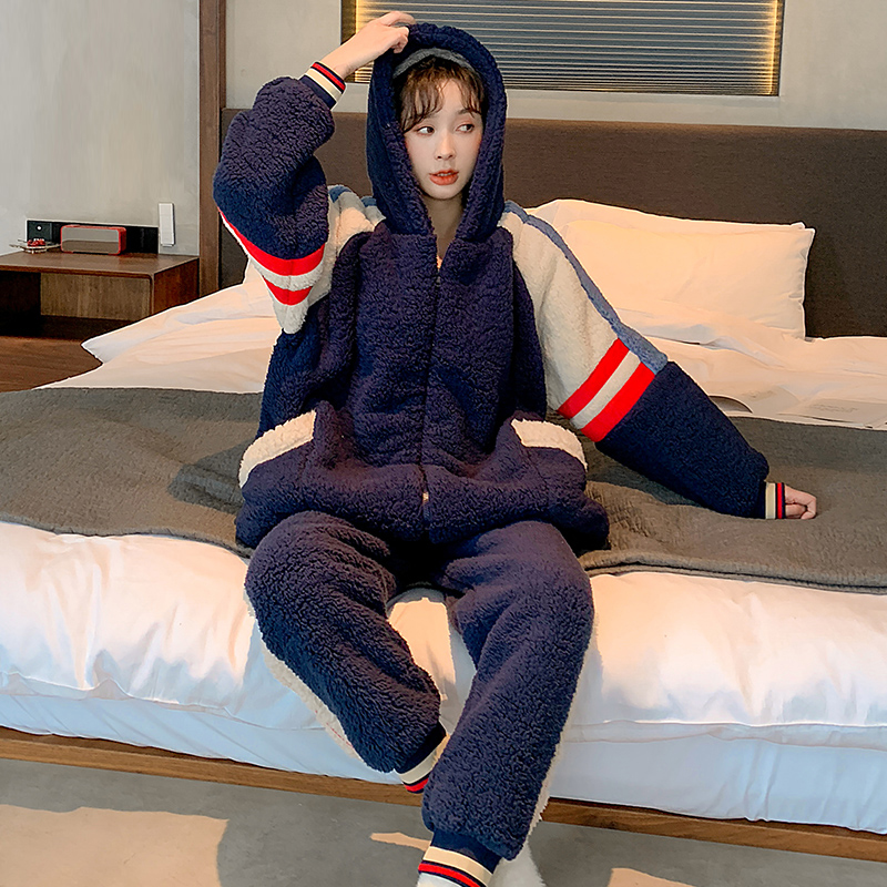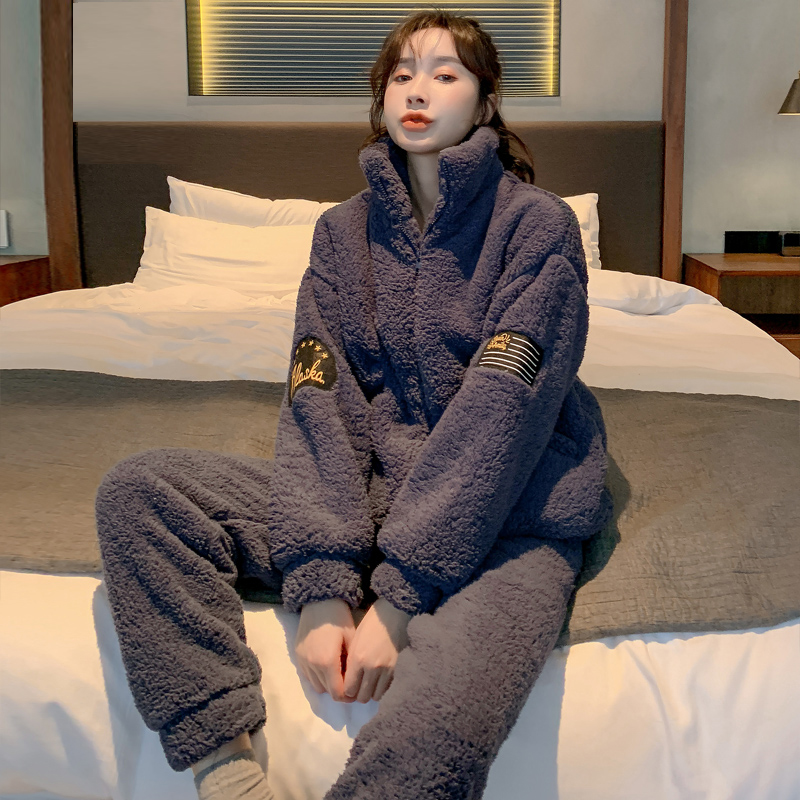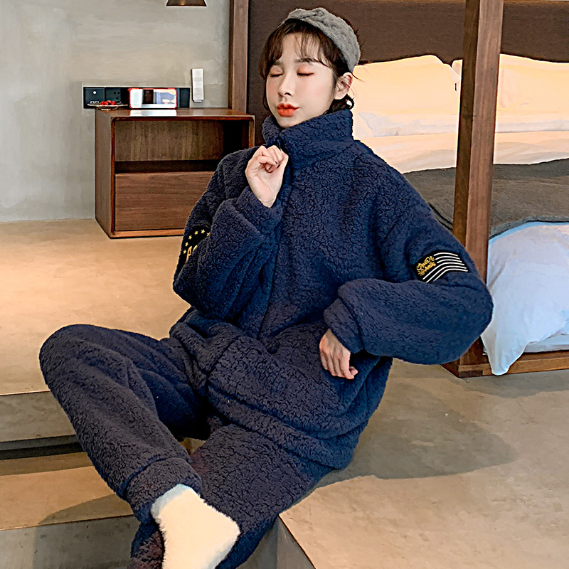 Fashion sense burst table ~ sports department can be worn outside high-neck warm autumn and winter coral fleece pajamas women's plus velvet thick section