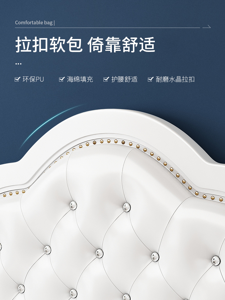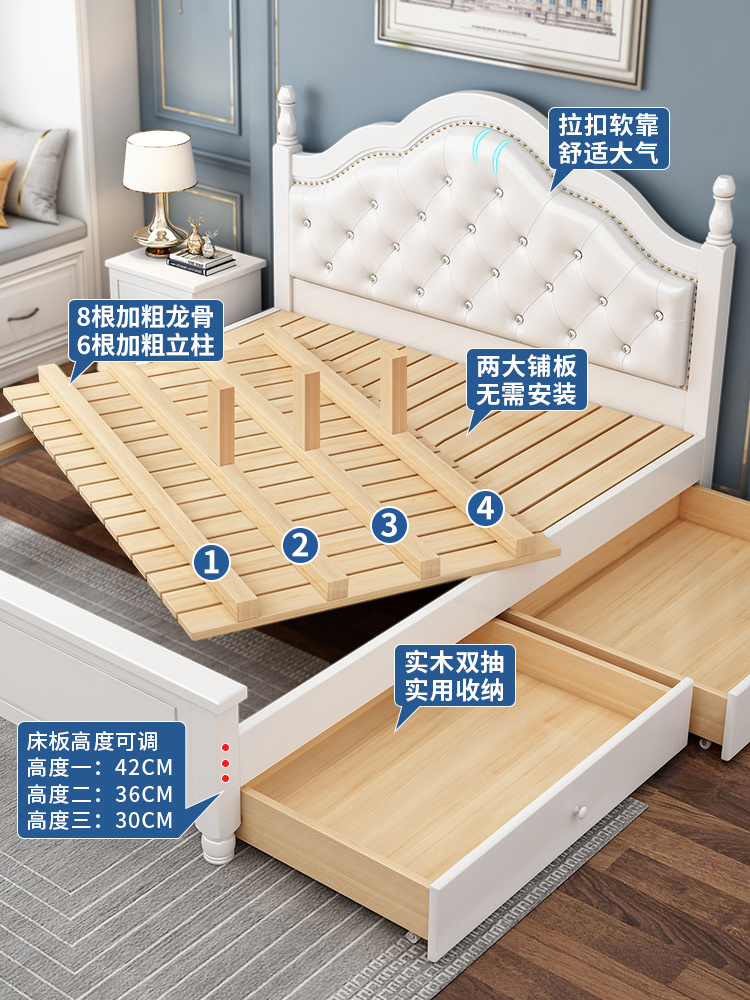 Upholstered bed solid wood double bed 1.8 meters modern simple and economical master bedroom 1.5 Korean-style pastoral European-style princess bed