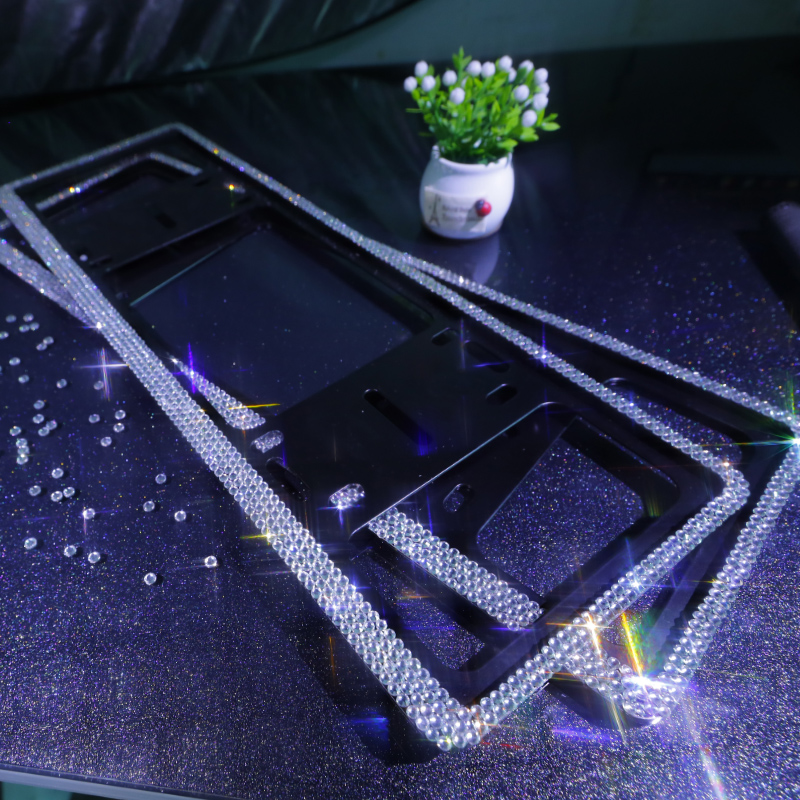 Applicable to the new traffic rules car diamond crystal license plate frame license plate frame diamond frame flash diamond diamond license plate frame set