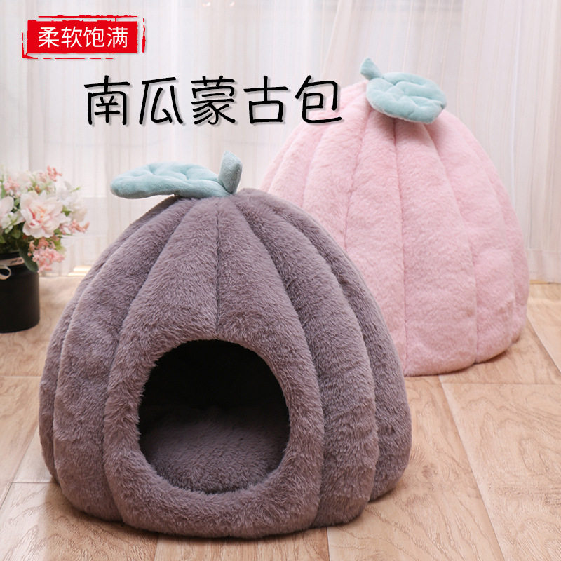 Net Red Pumpkin Cat Nest Winter Warm Semi-enclosed Pets Kennel Depth Sleep Kitty Supplies Cat Bed Cat House