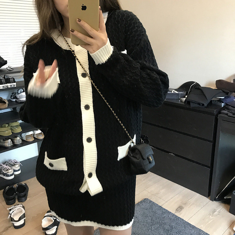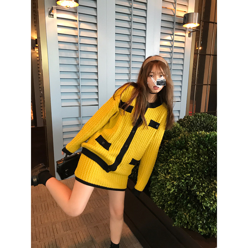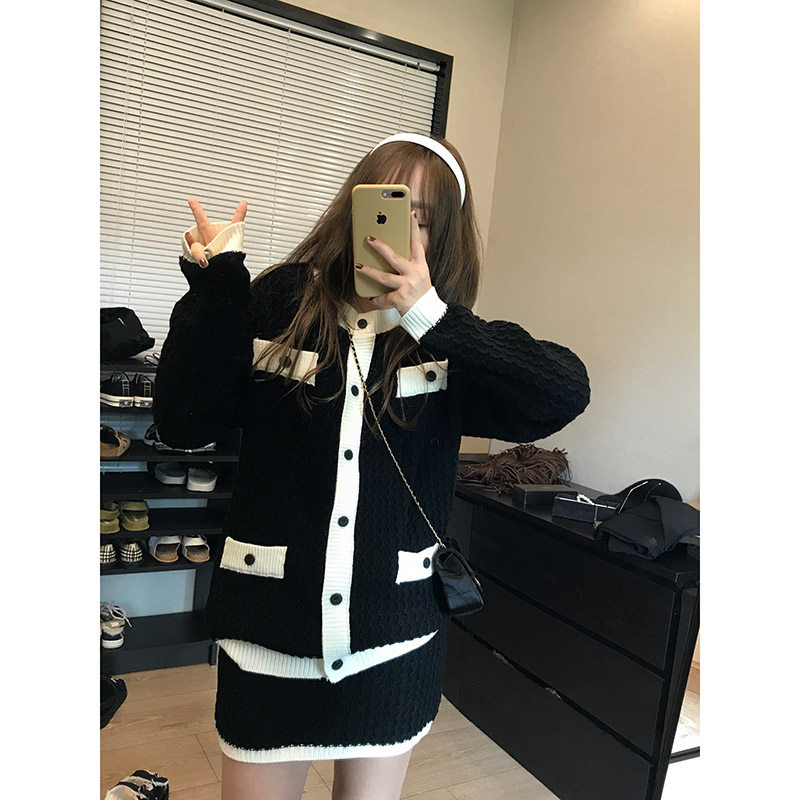 Wang Shaoshe's shop Xiaoxiang knitted suit Spring autumn new type of lazy Korean wind jacket jacket with high waist and half body short skirt
