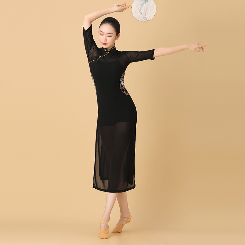 Autumn classical dance Feihe cheongsam amorous ethnic dance Chinese wind gauze practice clothes dance clothes performance clothes female