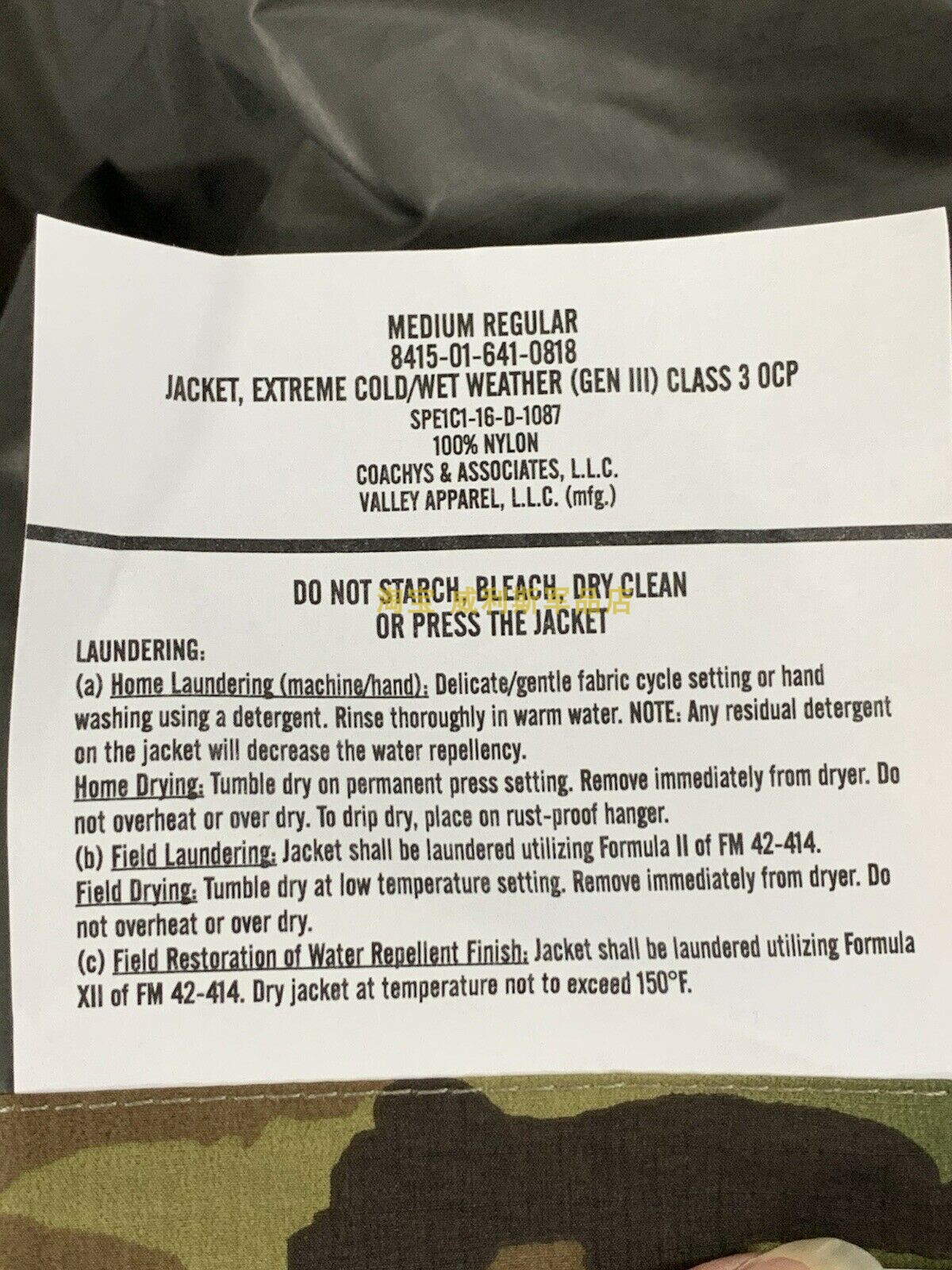U.S. military version of the original MULTICAMOCP color camouflage ECWCS waterproof GENIII3GTX charge clothes