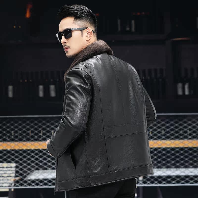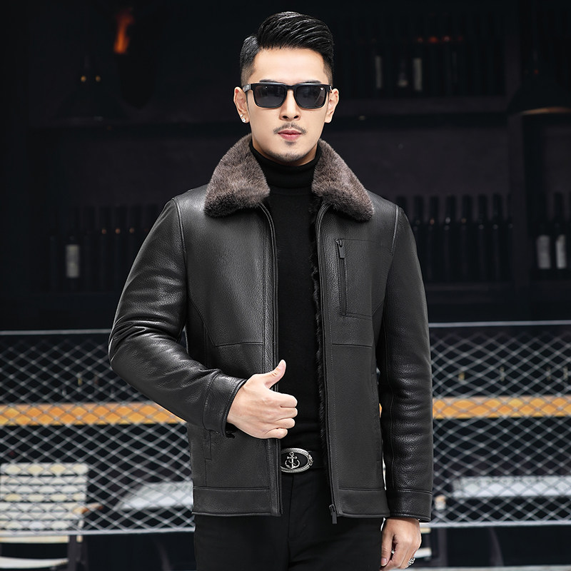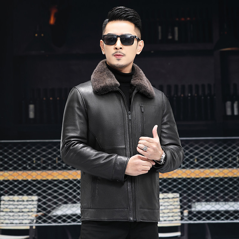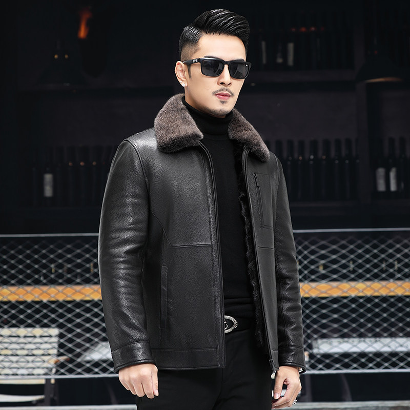 Winter 21 new Haining leather men's leather short mink jacket lapel leather wool one goat leather jacket