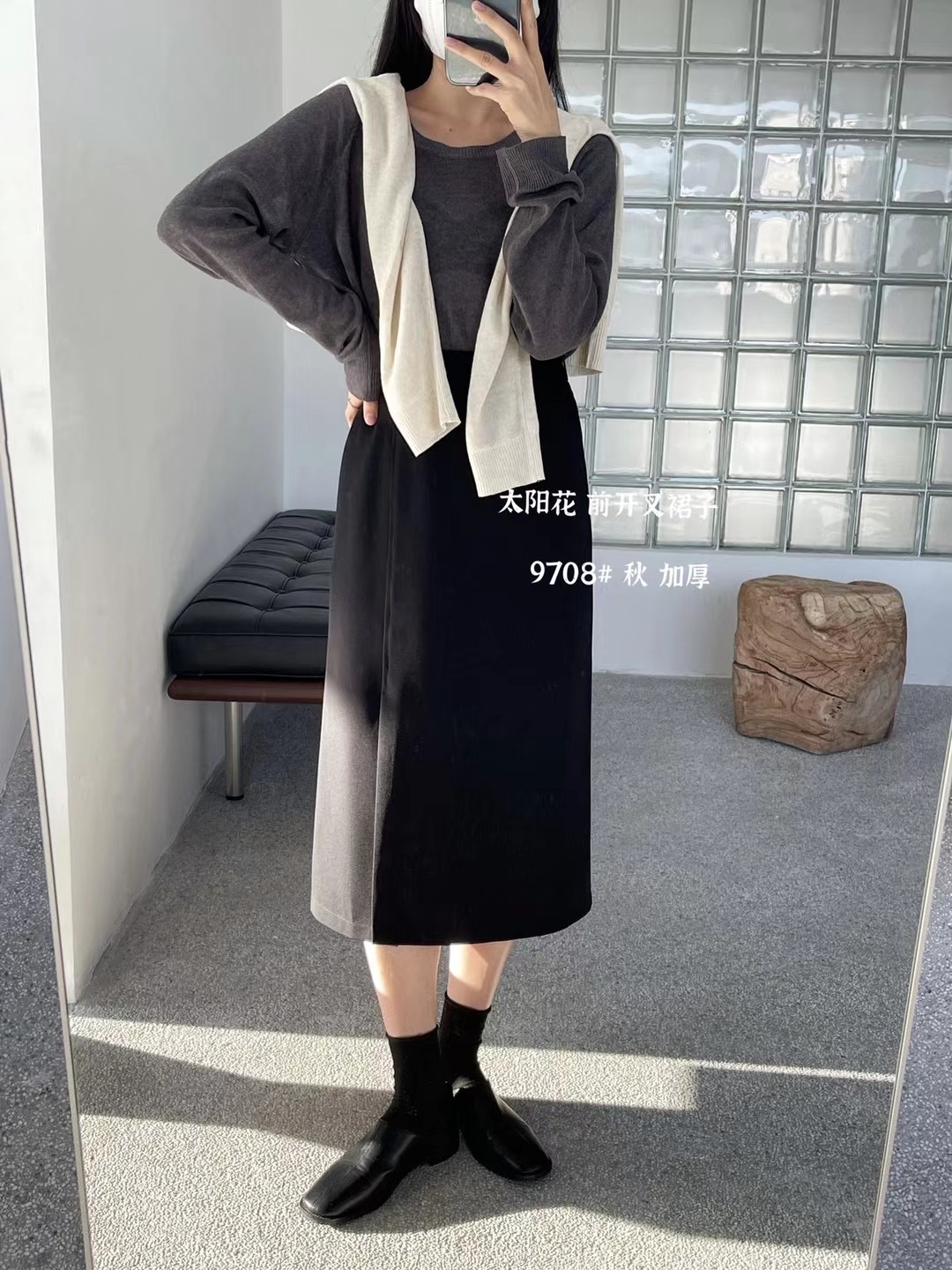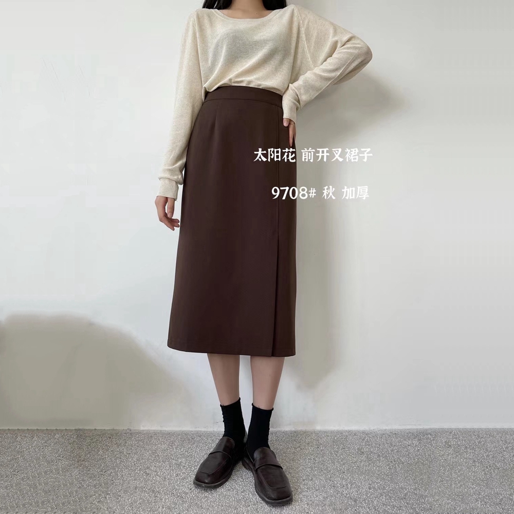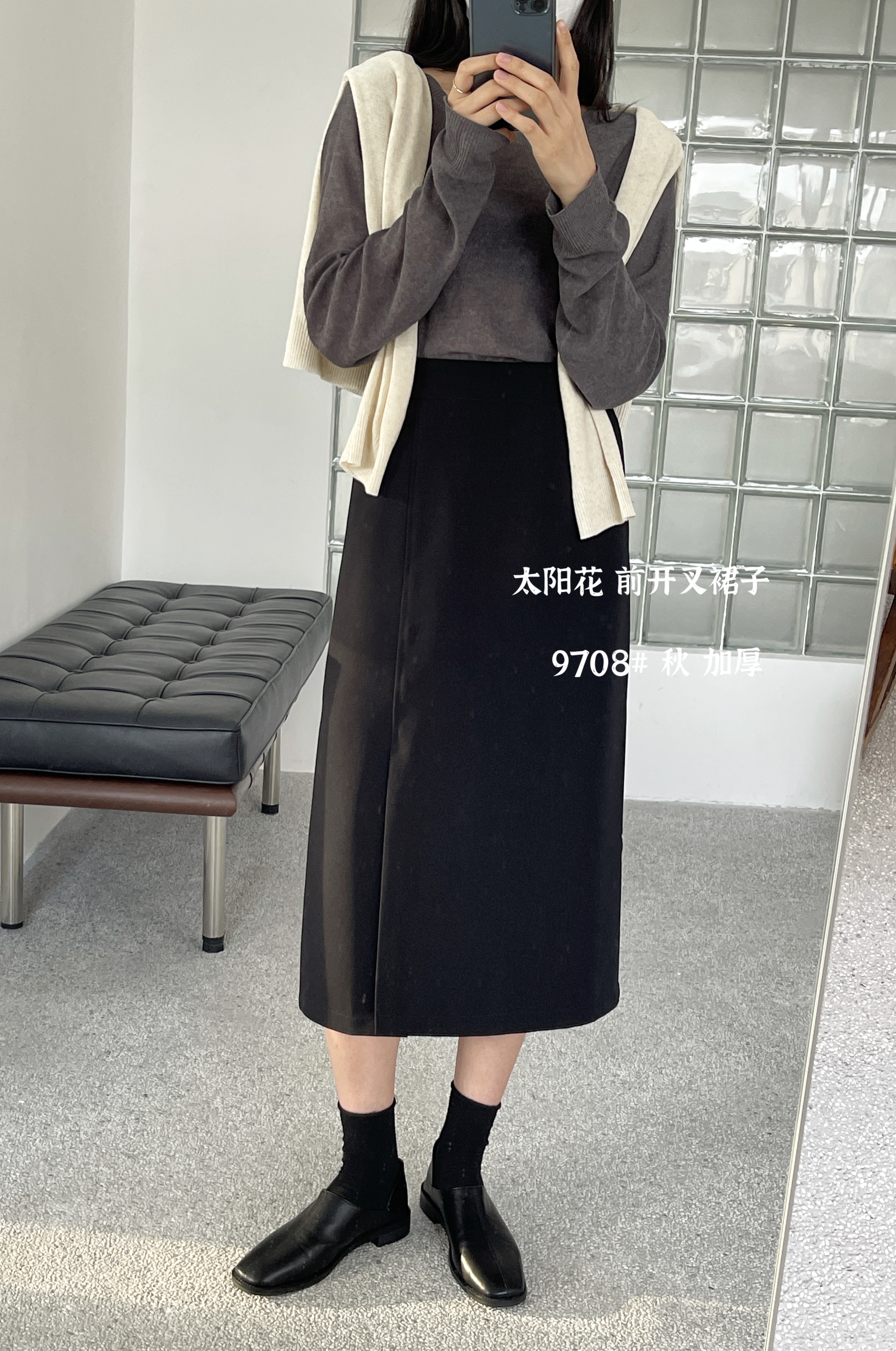 High waist display slim suit fabric half body dress in front of the fork in the long version Canopy Wide A Character Dress Fall Straight Drum Skirt