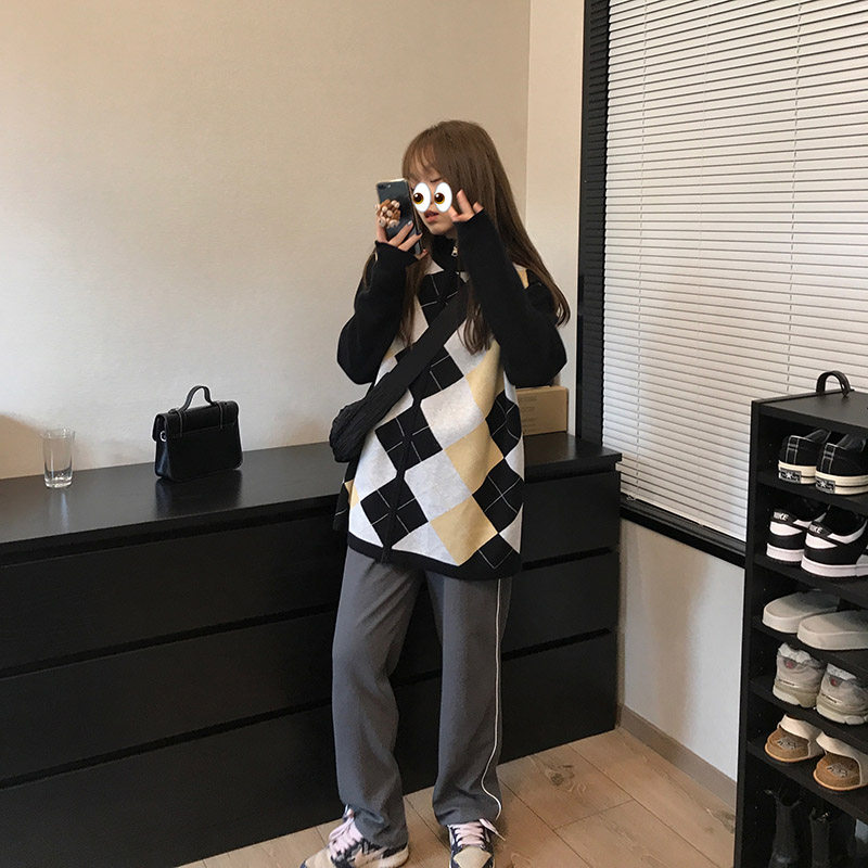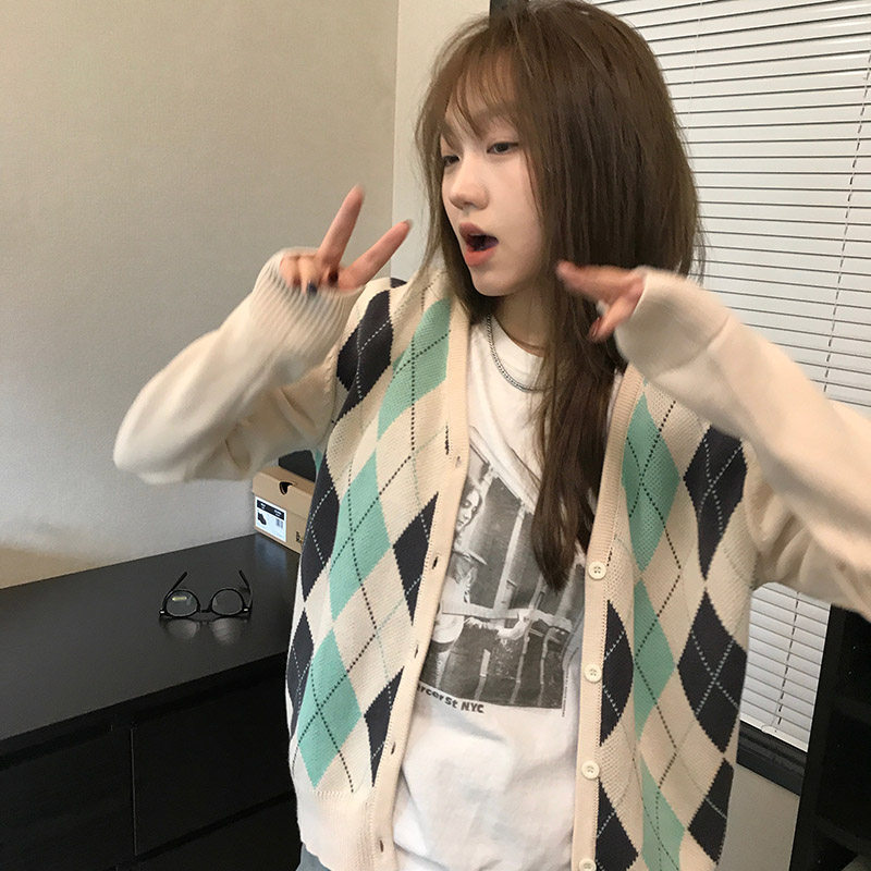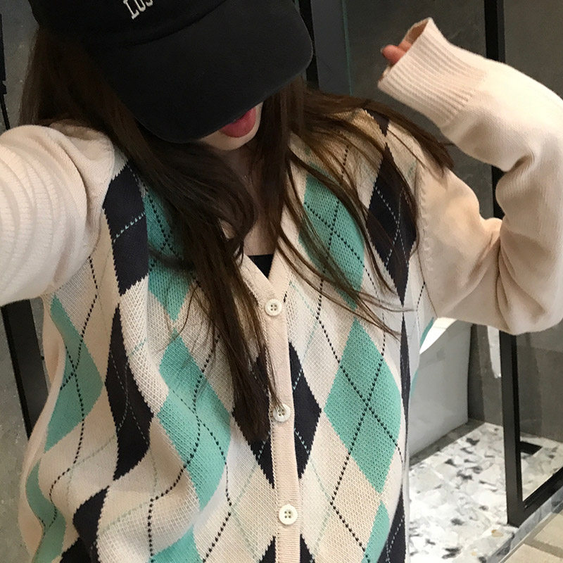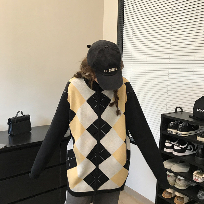 Wang Shaoshe's store Lingg V neckline sweater early spring fall High collar Lazy Wind Korea Version Loose Knit Cardiovert Coat