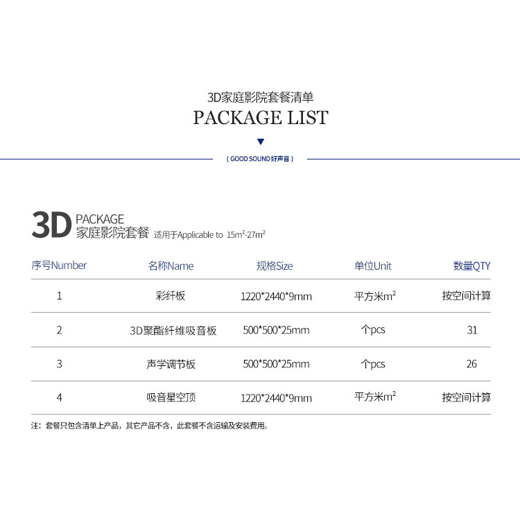 Good Sound 3D Home Cinema Package Suction Soundboard Sound Absorbing material AV room Villa Private Cinema Acoustic programme
