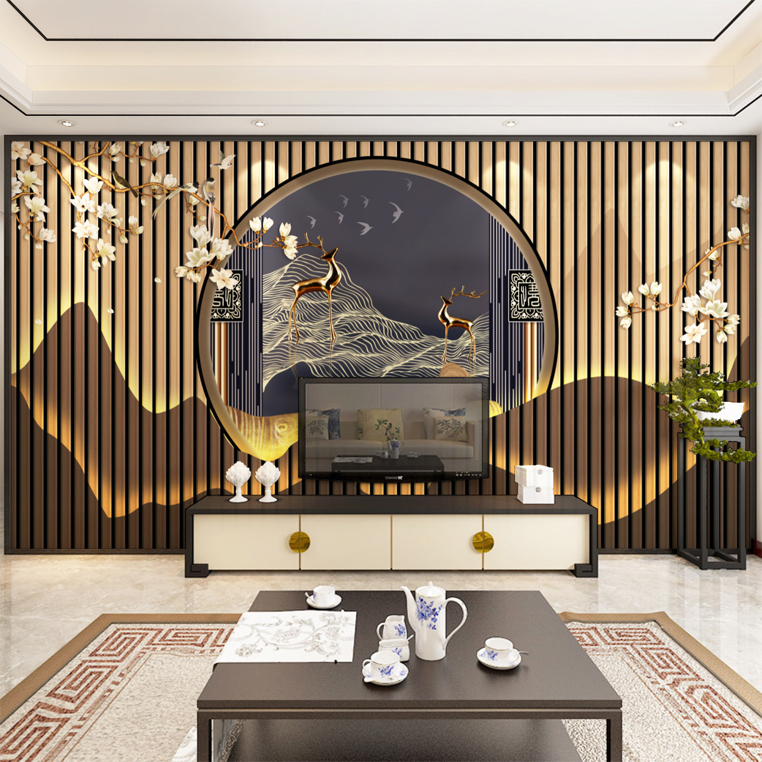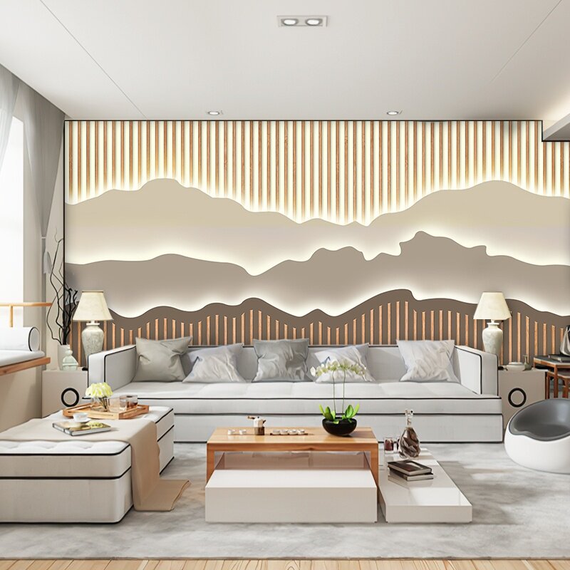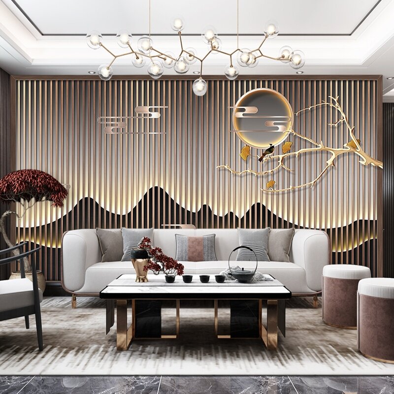 Bamboo Wood Fiber Integrated Wall Panel TV Background Wall Modern Chinese Tea Room Buttoned Board Hotel Living-room Decorative wall panel