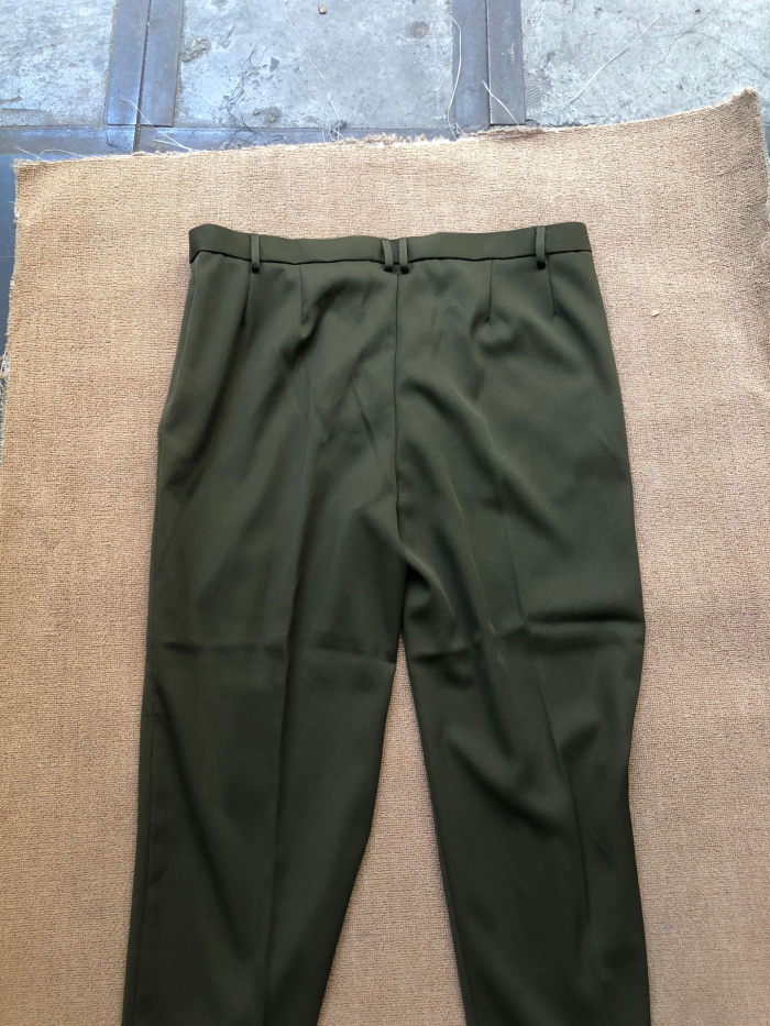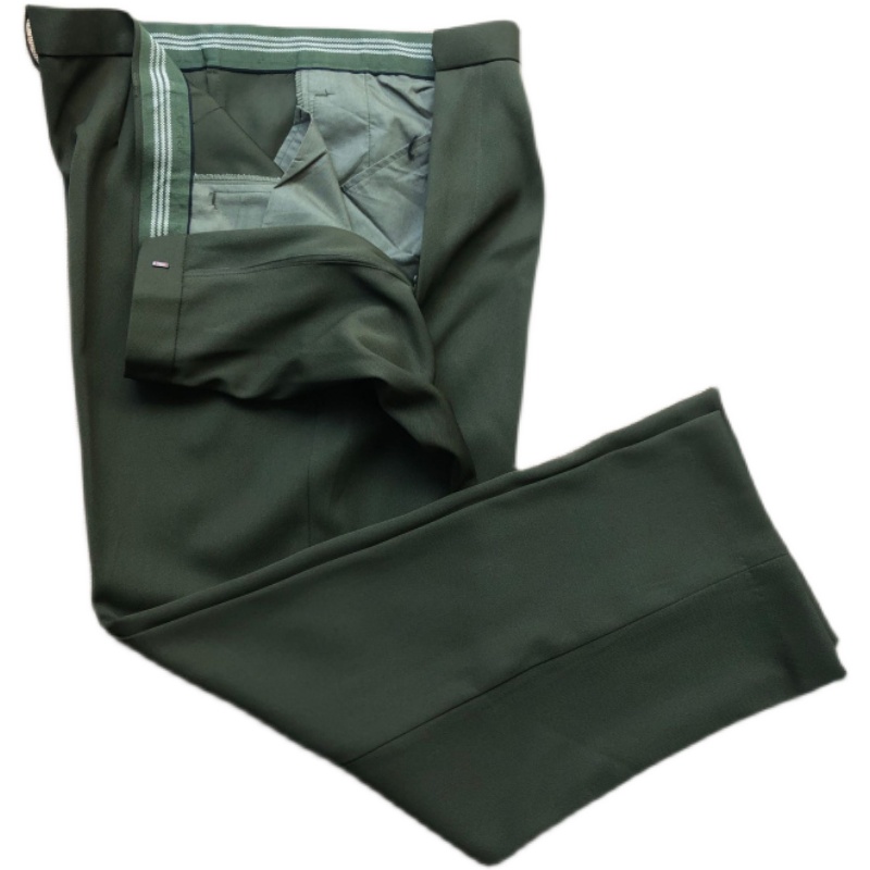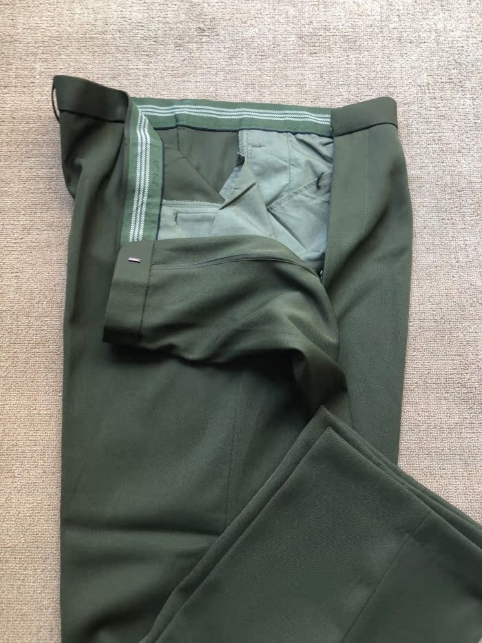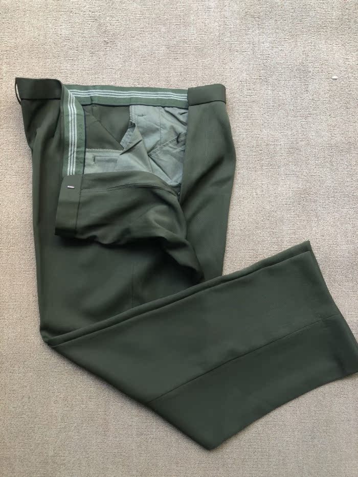 Old-fashioned 04-year winter trousers yellow-green twill serge fabric winter trousers thick military fan slacks
