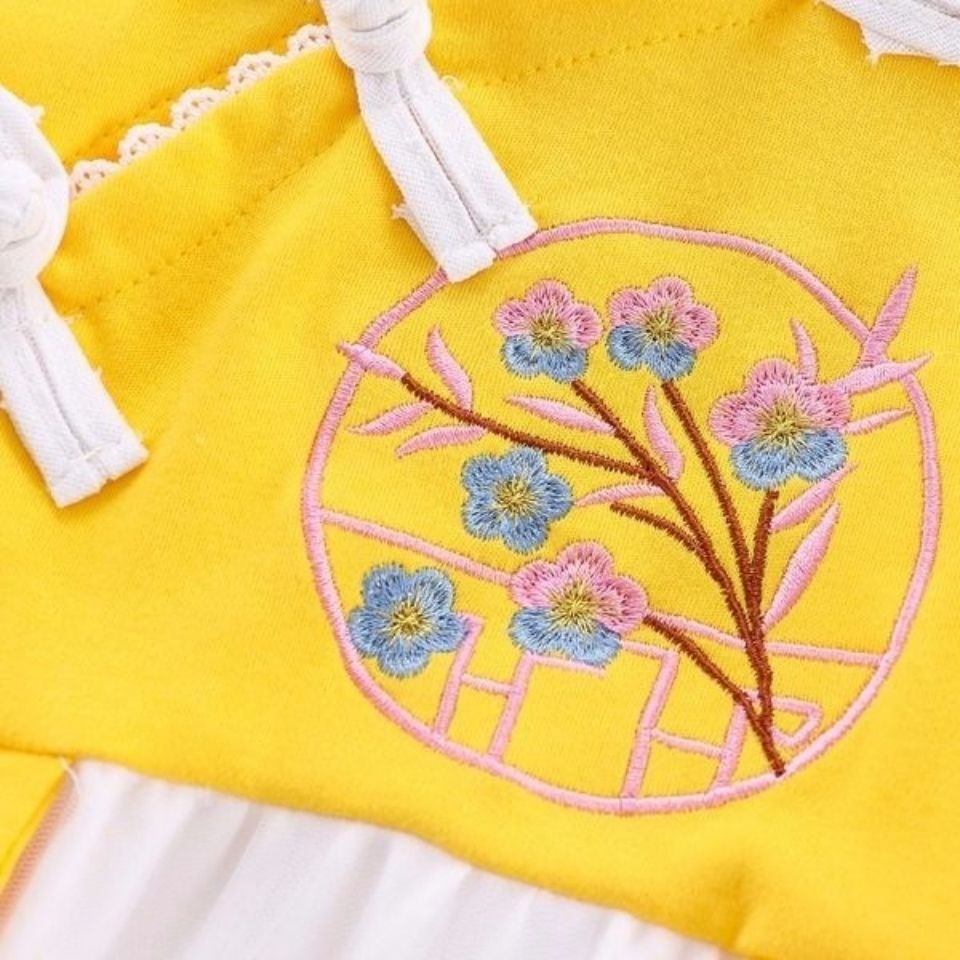 Pink hanbok lace romper yellow hanbok lace romper red (lotus tassel) romper pink (lotus tassel) romper off-white (princess collar) romper pink (princess collar) romper pink (embroidery)