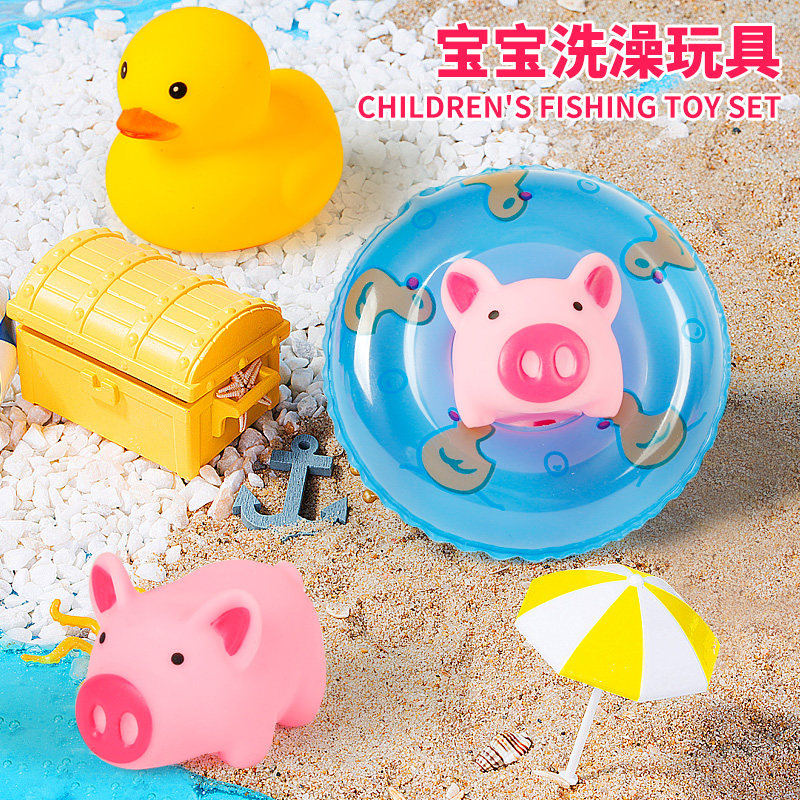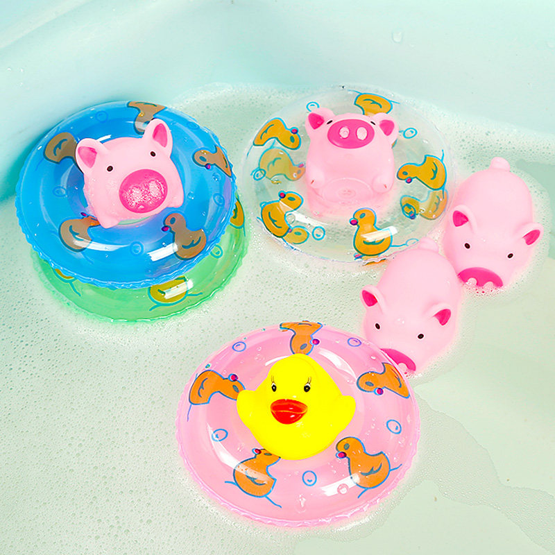 Inflatable mini swimming ring children play in water soft glue small yellow duck net red pig baby child bath toys