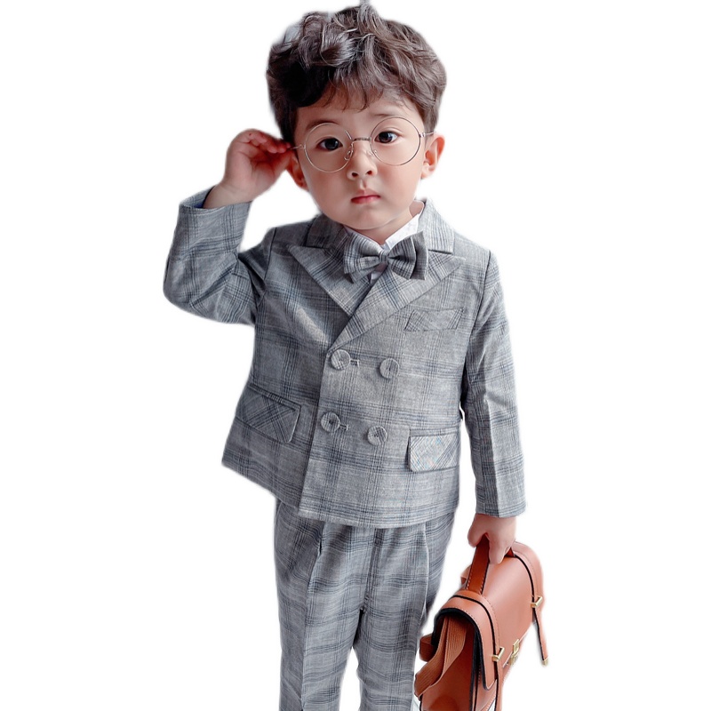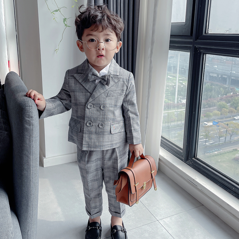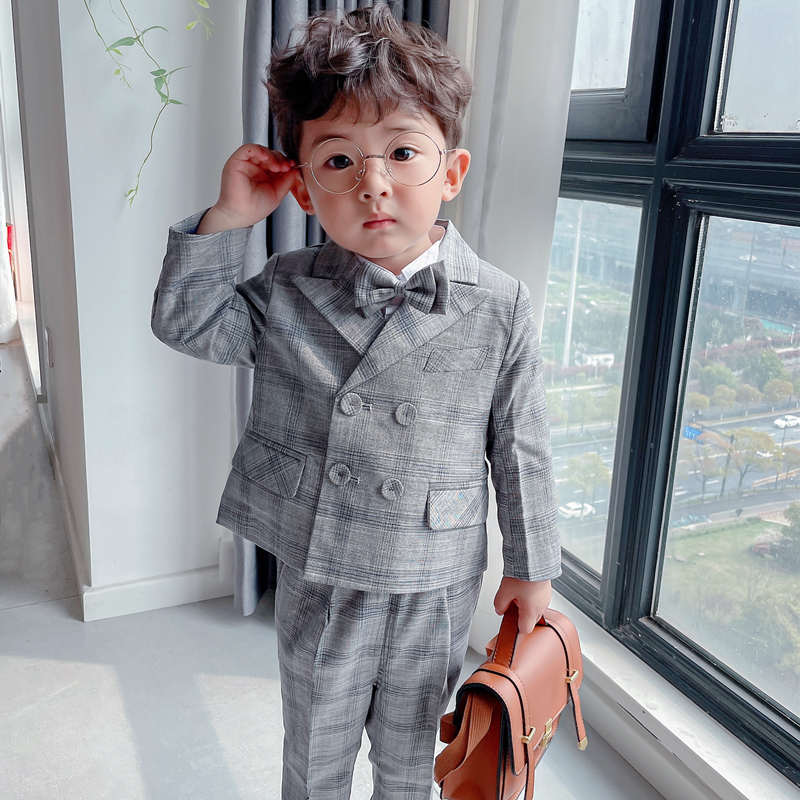 Baby dress autumn and winter one-year-old children's British style handsome suit boys Korean version plus velvet small suit suit