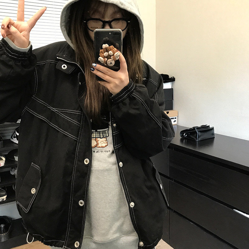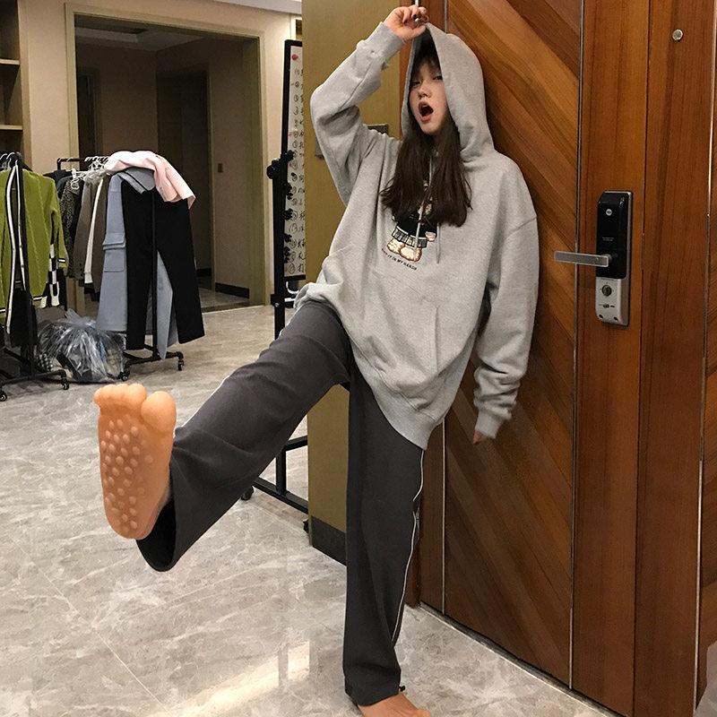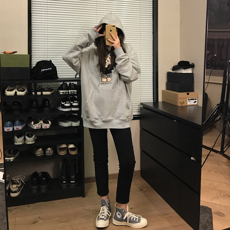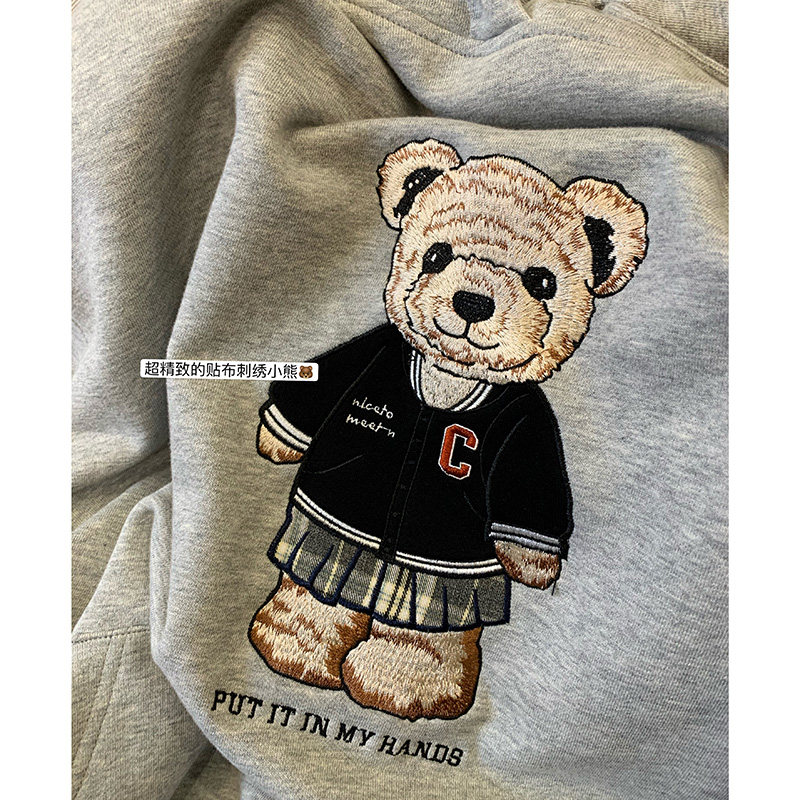 Wang Shaoshe's shop grey Even cap sports shirt spring autumn season thin Bear embroidery Long sleeves loose bf Lazy Wind Blouse