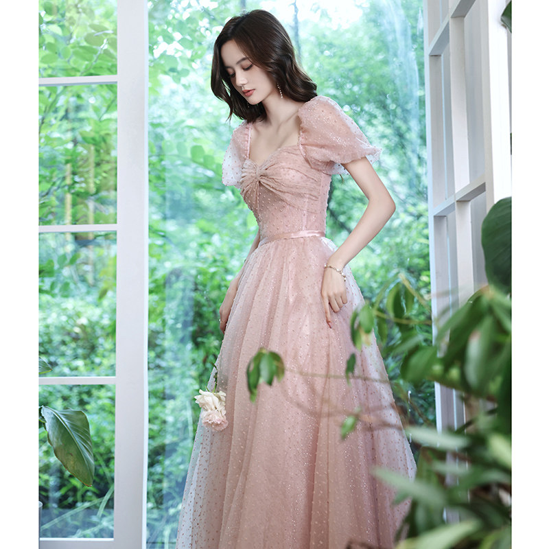 Pink Engagement Evening Gown Dress Lady Banquets High-end Light Lavish Luxury HIGH SENSE ART EXAMINER FOREIGN DRESS
