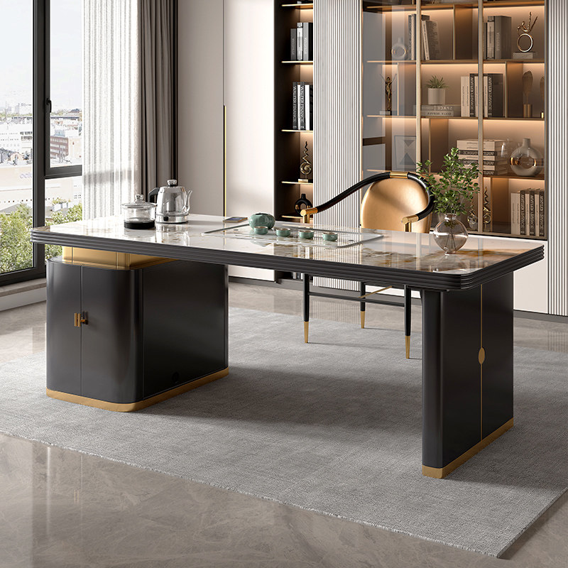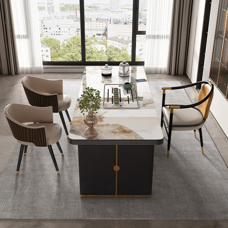 Light luxury tea table modern minimalist office tea table desk integrated with kettle embedded rock plate tea table