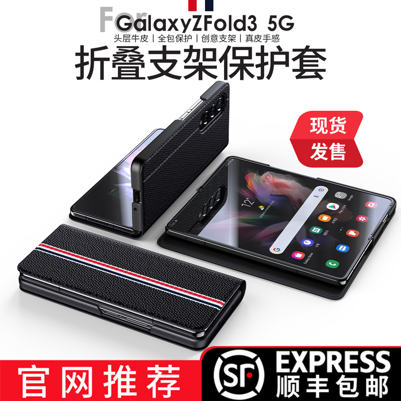 New applicable Samsung Galaxy Z Fold3 high-end phone protection shell fold2 folding screen zfold3 protective sleeve w21 w21 leather SM-f9260 limited edition