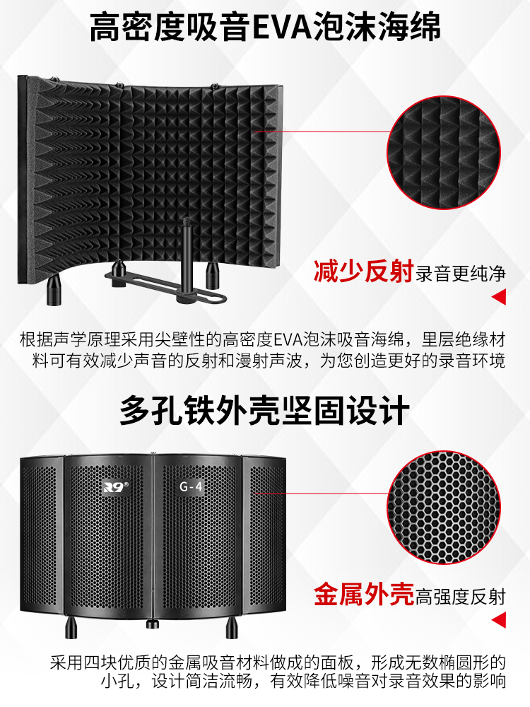 Microphone recording shed soundproof hood mike windproof screen anti-spray mesh suction sound hood anti-noise noise reduction plate metal four doors