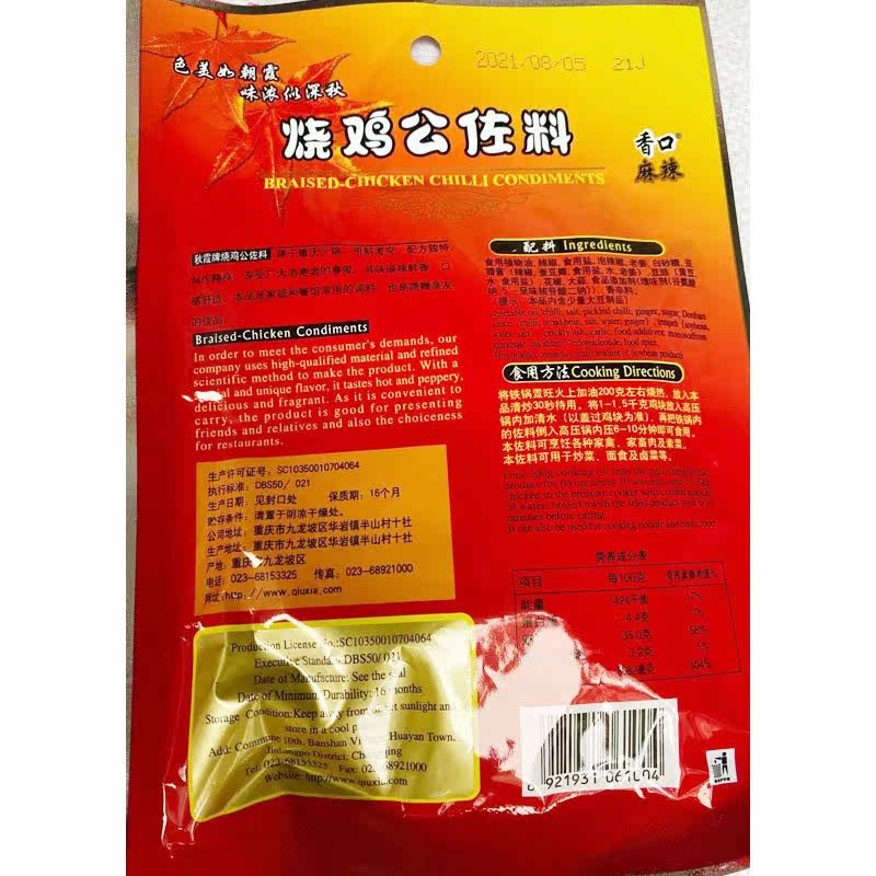 Qiuxia Roasted Chicken Seasoning FCL 150g*50 Generation Spicy Seasoning Guarantee Chongqing Specialty