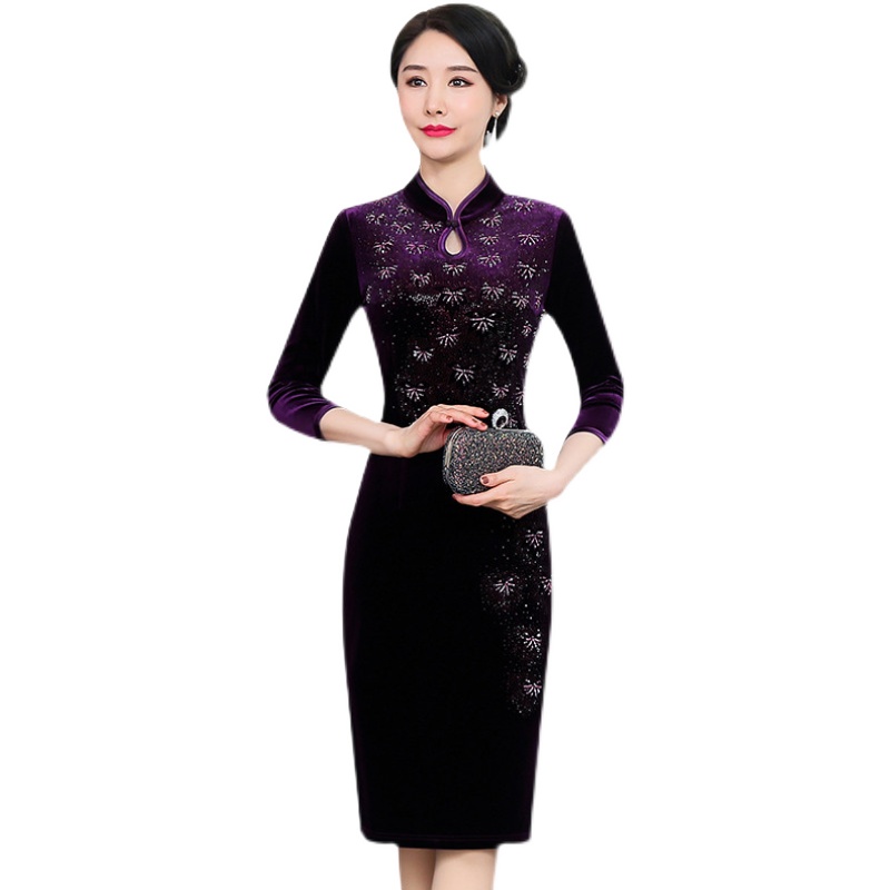 2022 new gold velvet improved version qipao skirt usual little joyless lady's mother wedding dresses with noble women
