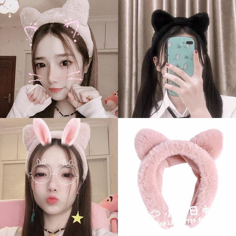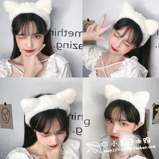 Japanese GP Web Handscape female face-shamped cat ear hoop net red plush cute girl anti-slip hair decoration