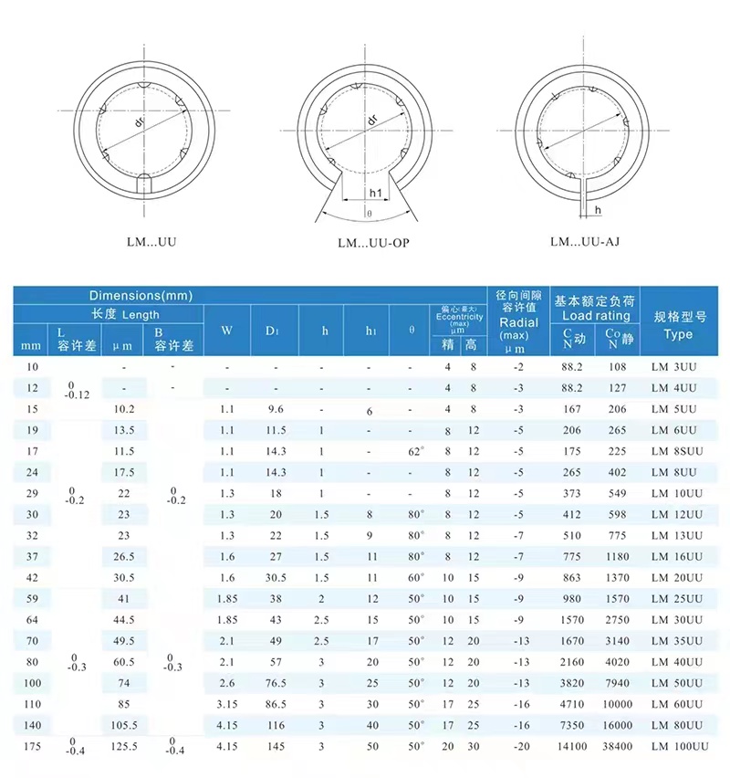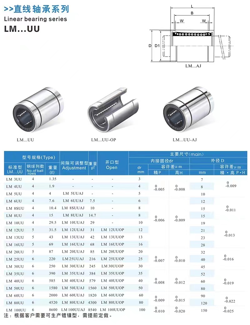 Standard separate straight line LM3 3 * 7 * 10 standard separate straight line LM4UU 4 * 8 * 12 standard separate straight line LM5UU 5 * 10 * 15 standard separate straight line L