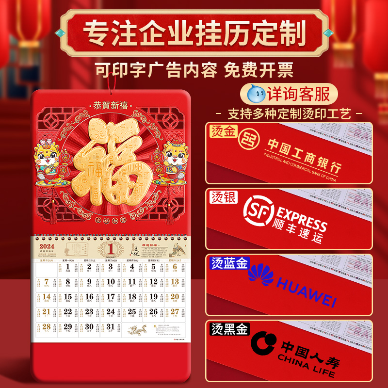 Hang Calendar 2024 New Calendar Home Hanging Wall Large Numbers Dragon Year Fu Characters Year New Year Creative China Wind Gold Leaf Creative Hangover Custom-Taobao