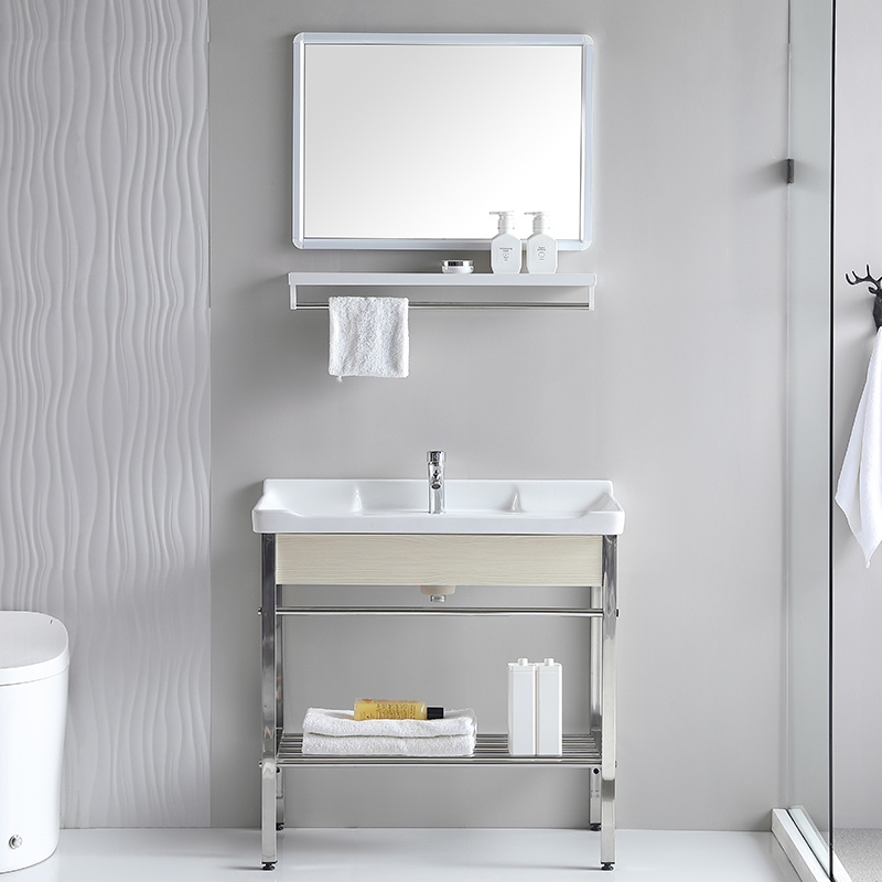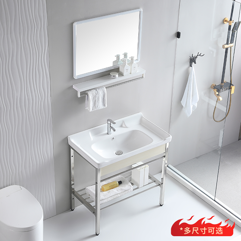 Ceramic basin small family type floor-type washbasin integrated balcony toilet washbasin minimalist stainless steel bracket basin-Taobao