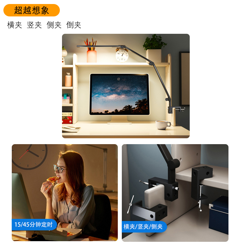 Eye protection desk lamp for students to learn to read and write folding clip rechargeable painting design work clip lamp