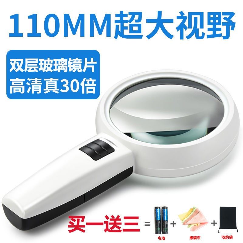Hand-held magnifying glass 50 times with lights 40 times high-definition elderly reading children's students' reading appreciation 100 times expansion
