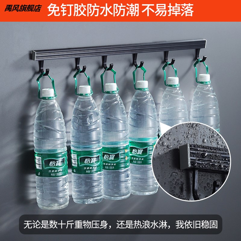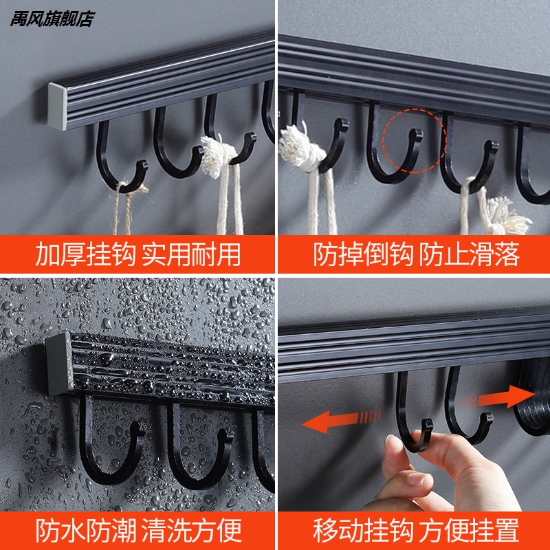 Kitchen hook free punching rack hanging rod wall hanging spoon shovel rack wall storage activity row hook space aluminum