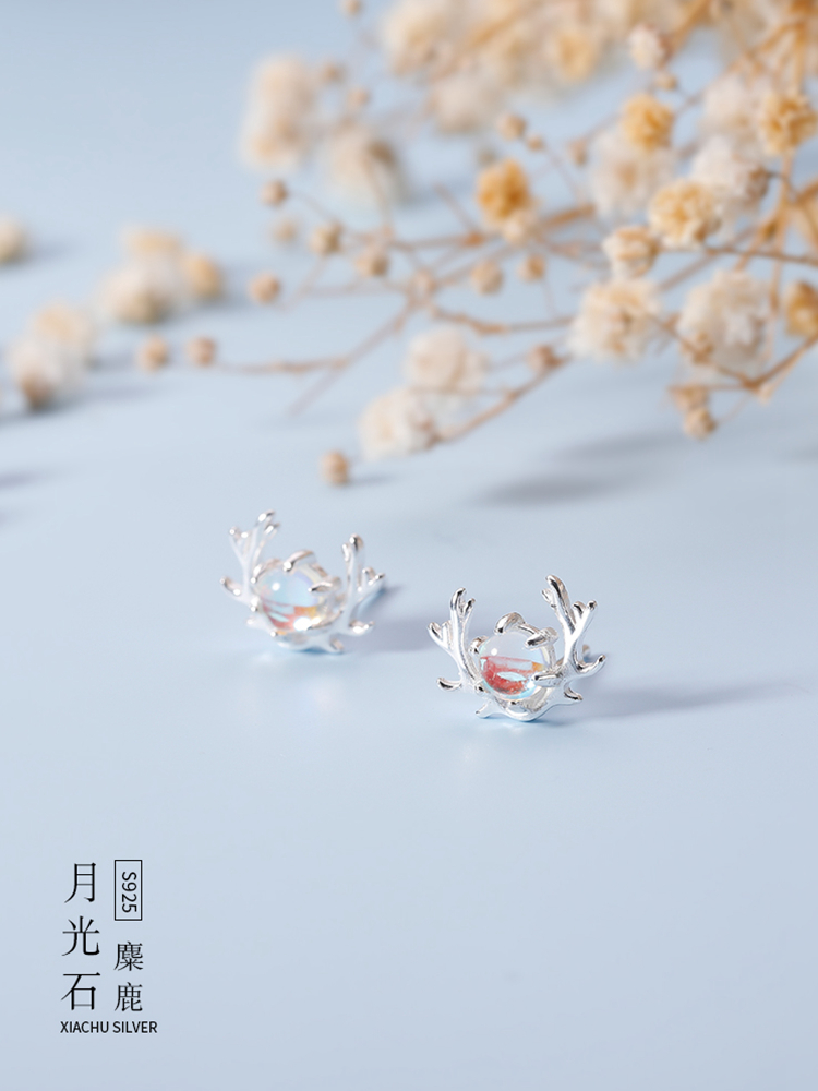 S925 Silver Moon Moon Elk Needle Female 2021 New Tide Student Xiaoxinsen Head Accessories with You