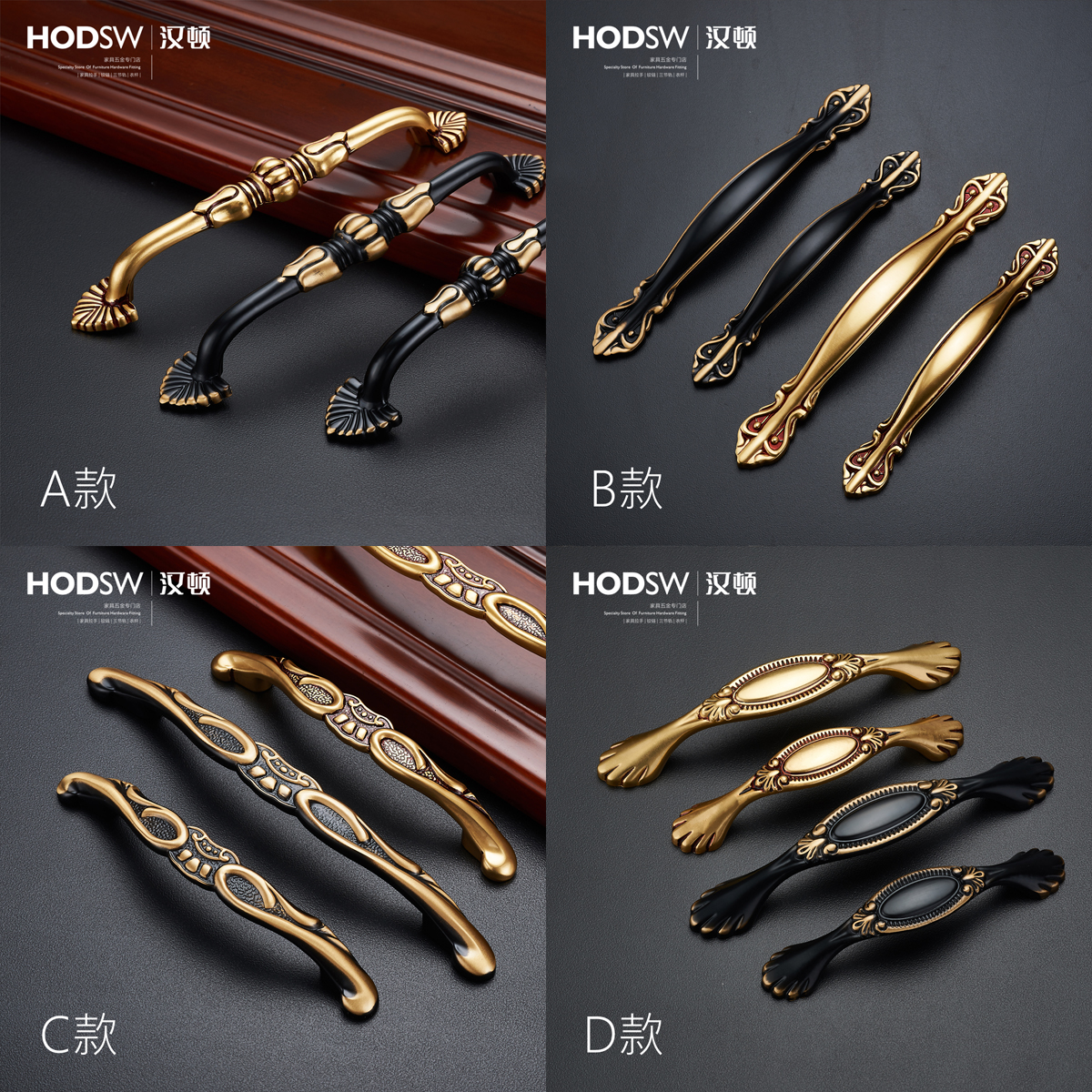 Hanton full copper cabinet door handle American overall closet door wardrobe European-style antique single-hole pure copper drawer light lavish door handle