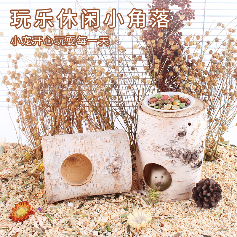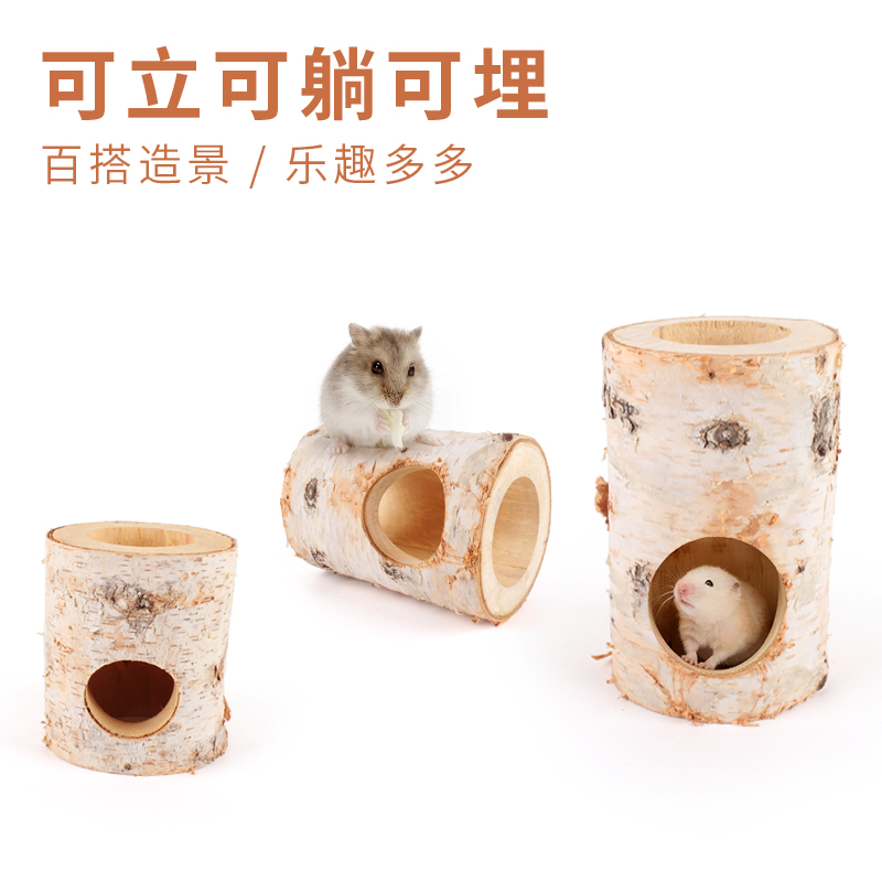 Really cute natural birch tree cave golden bear tunnel hamster landscaping nest small pet cave to avoid the house dry small house