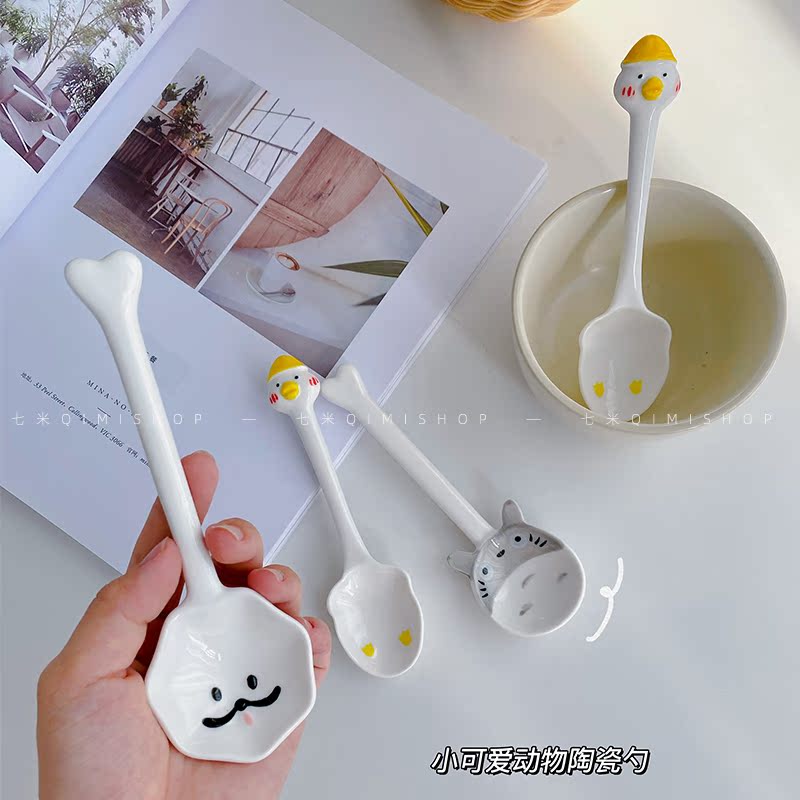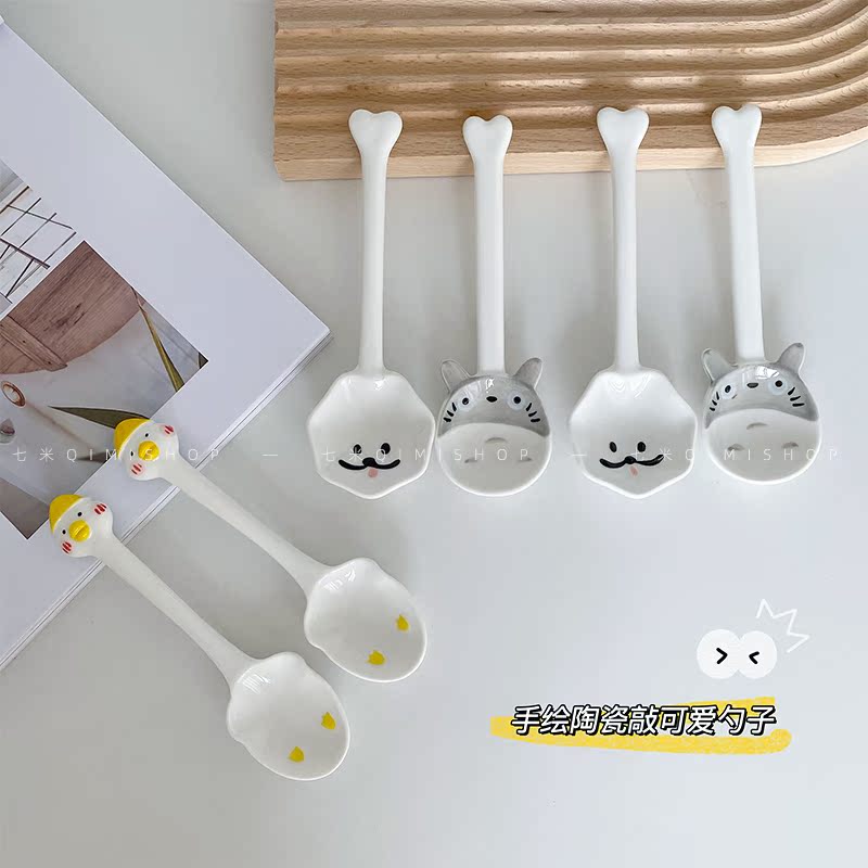 Seven meters Japanese cartoon ceramic spoon hand-painted animal dessert spoon student children soup spoon ins style tableware coffee spoon