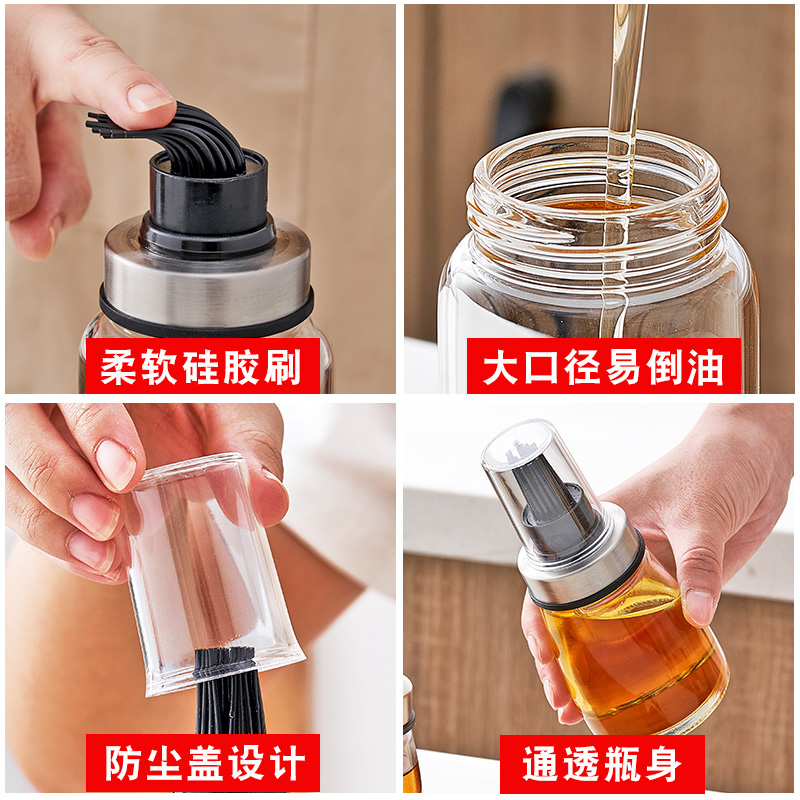 Kitchen silicone glass brush bottle baked barbecue brush resistant high temperature cookie bake grill oil bottle