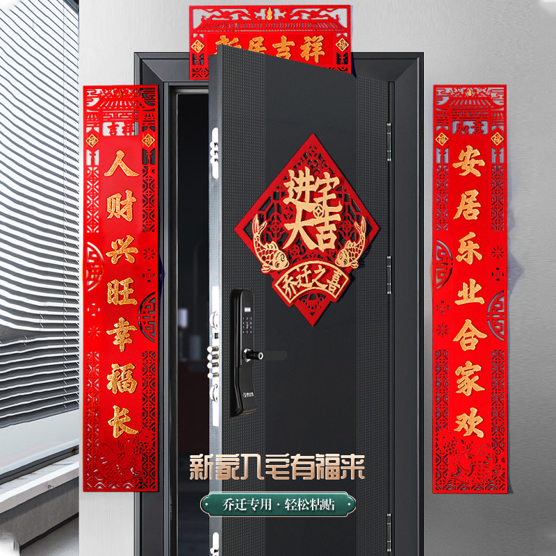2022 New Year's couplet gate decoration moving into the house moving into the new house into the house Fu word door stickers housewarming decoration supplies