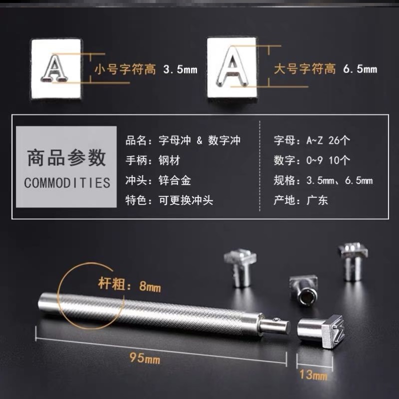Vegetable tanned leather leather printing punch leather English punch letter punch 36pcs digital seal handmade leather carving tool