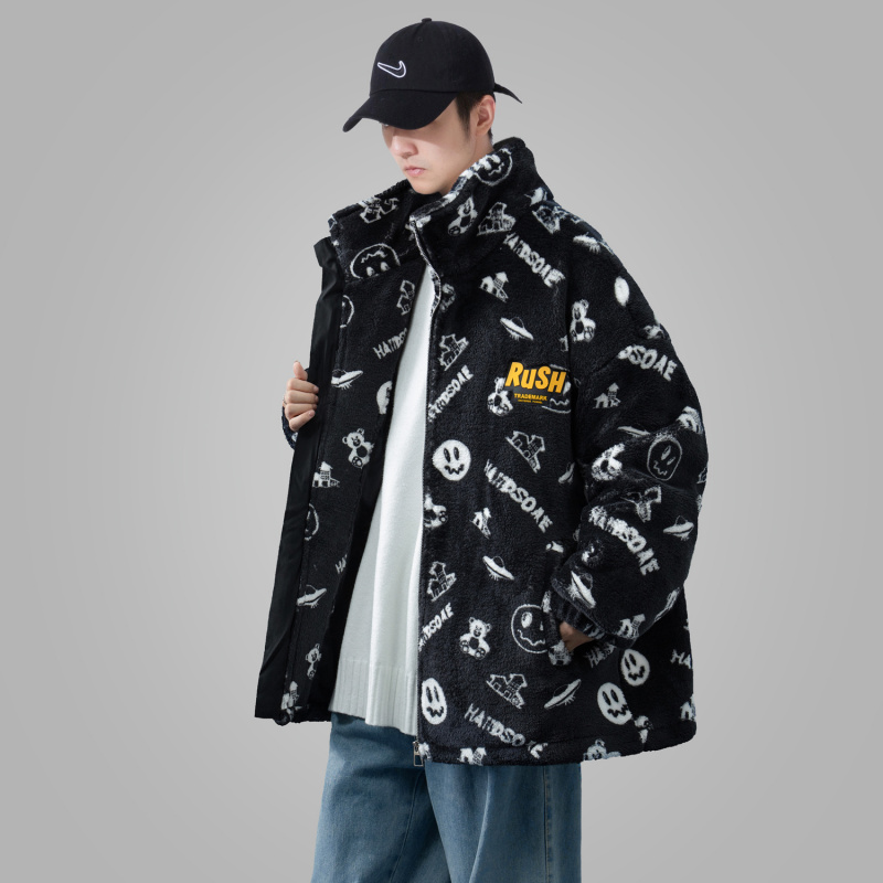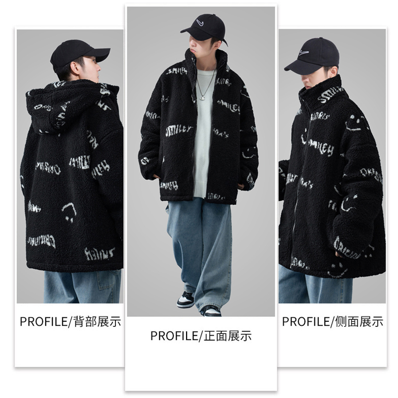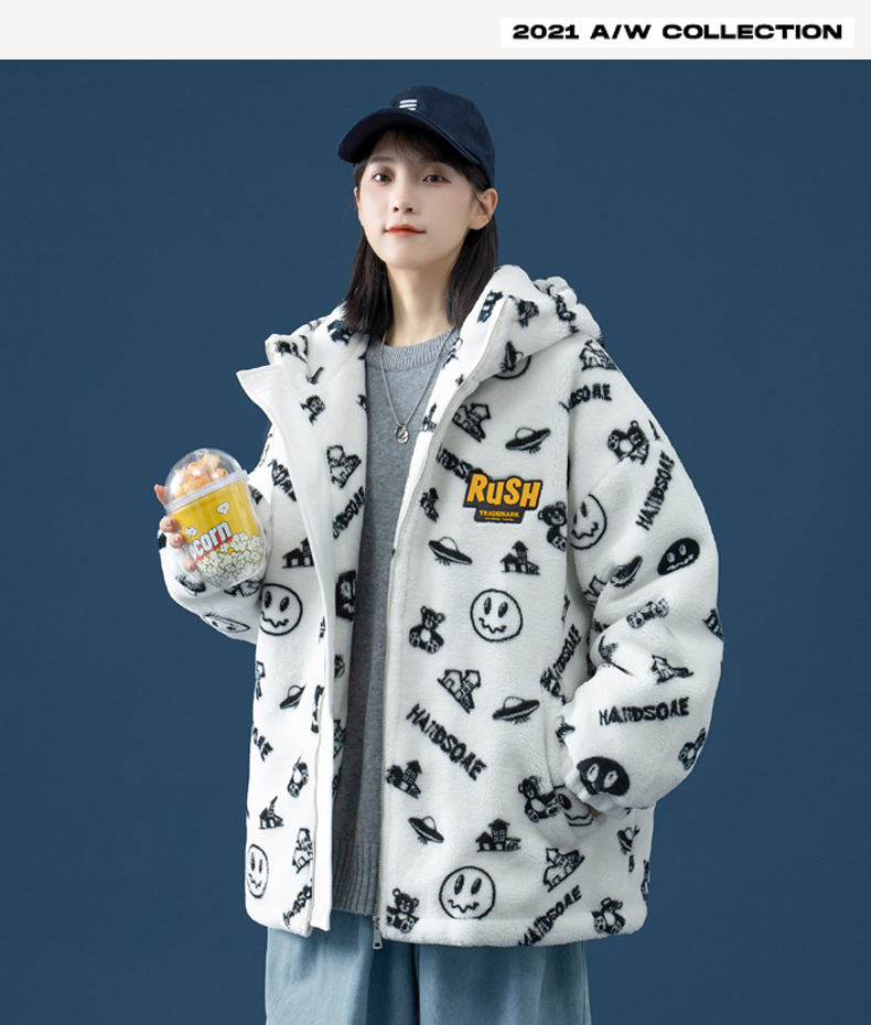 China Li Ning couple 2021 autumn and winter casual lamb wool coat granular fleece big size loose cotton cotton coat