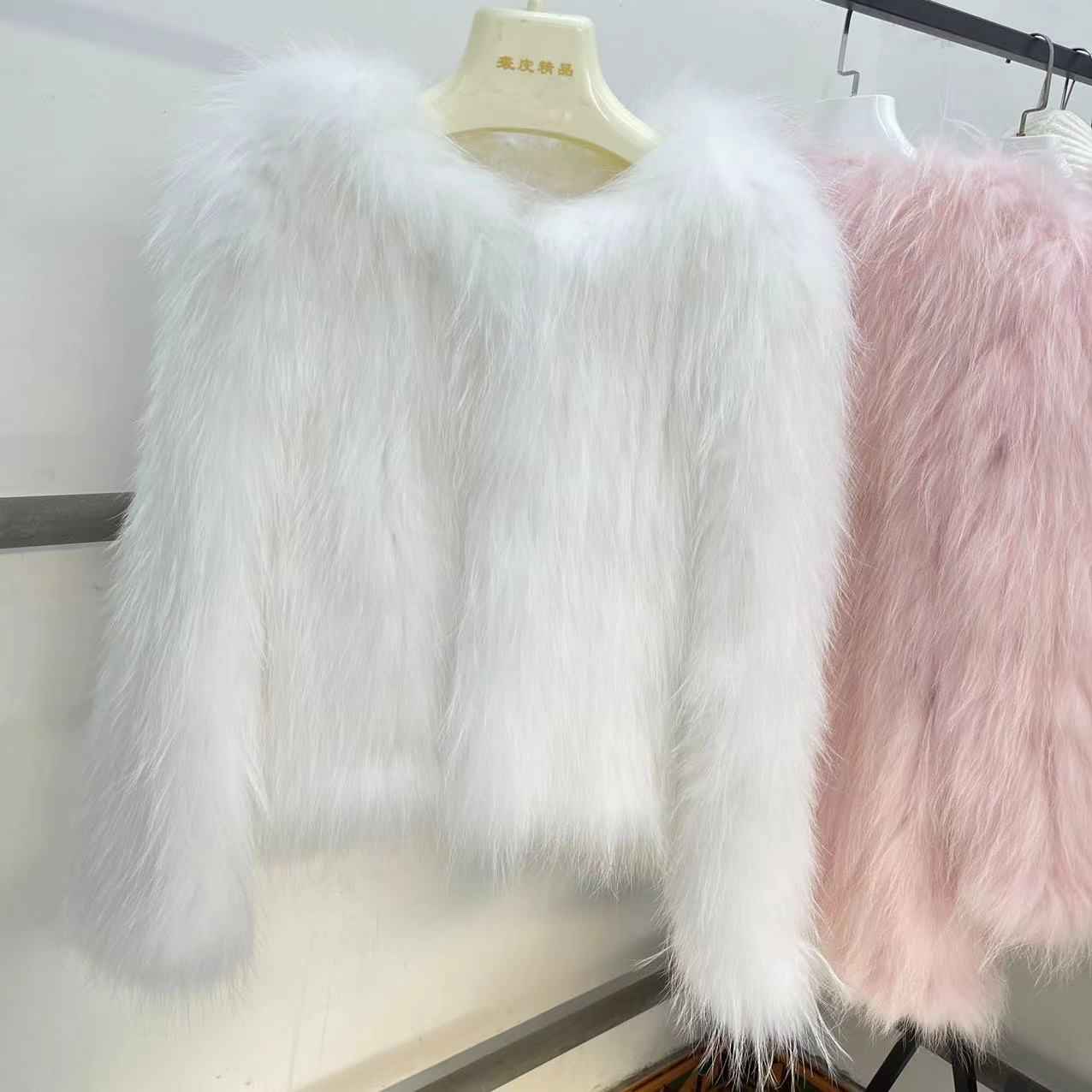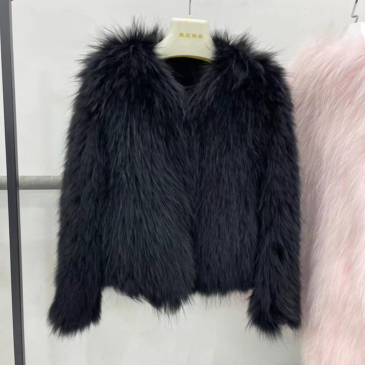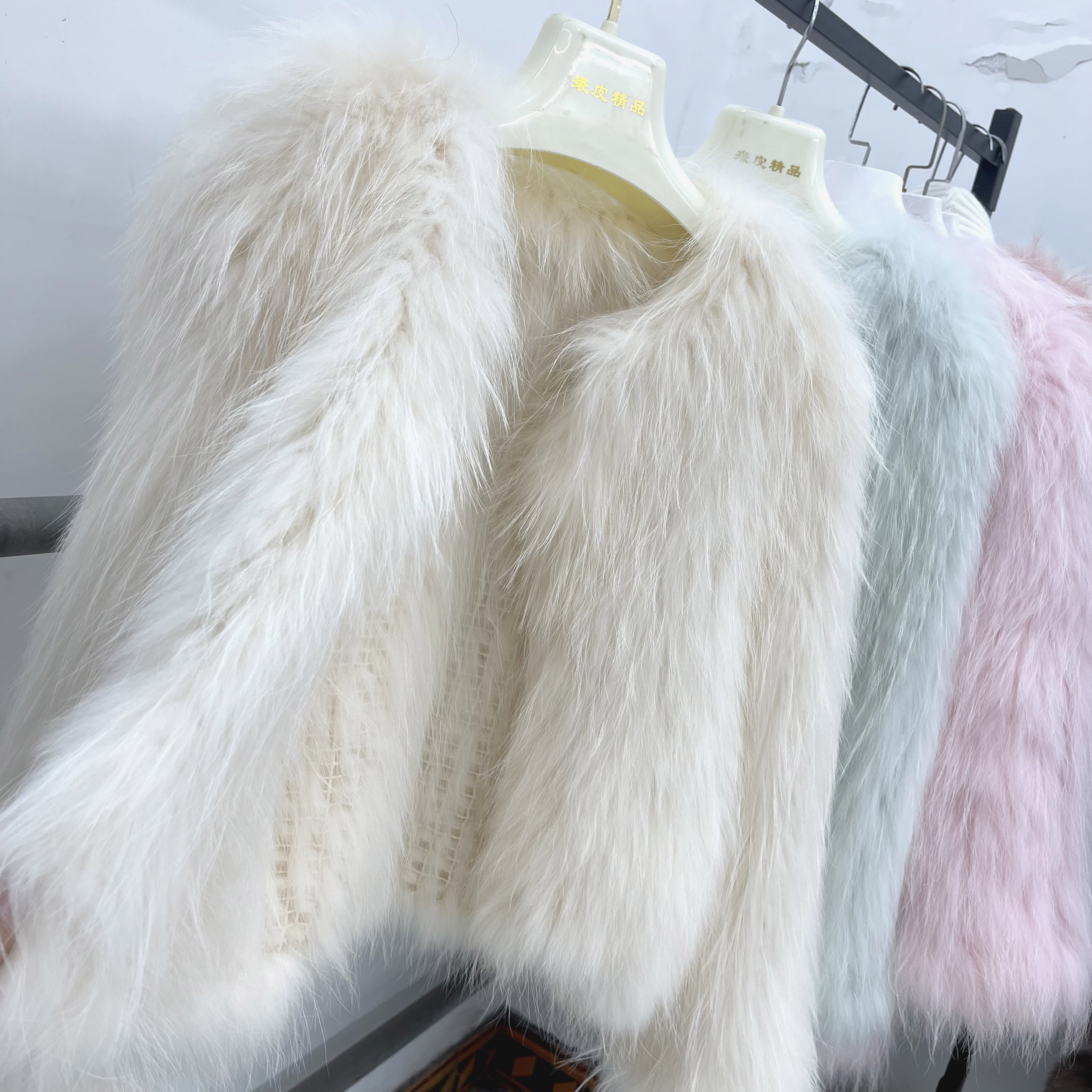 Fur new 2022 popular real raccoon fur double-sided woven fur coat short female young fashion fashion thin