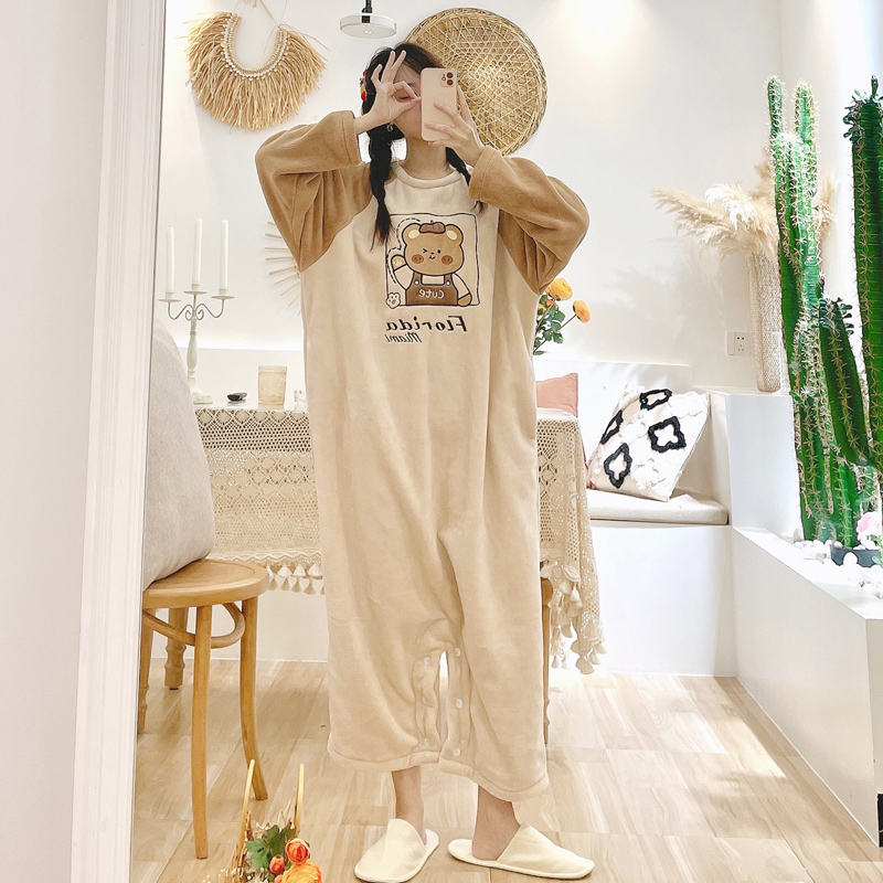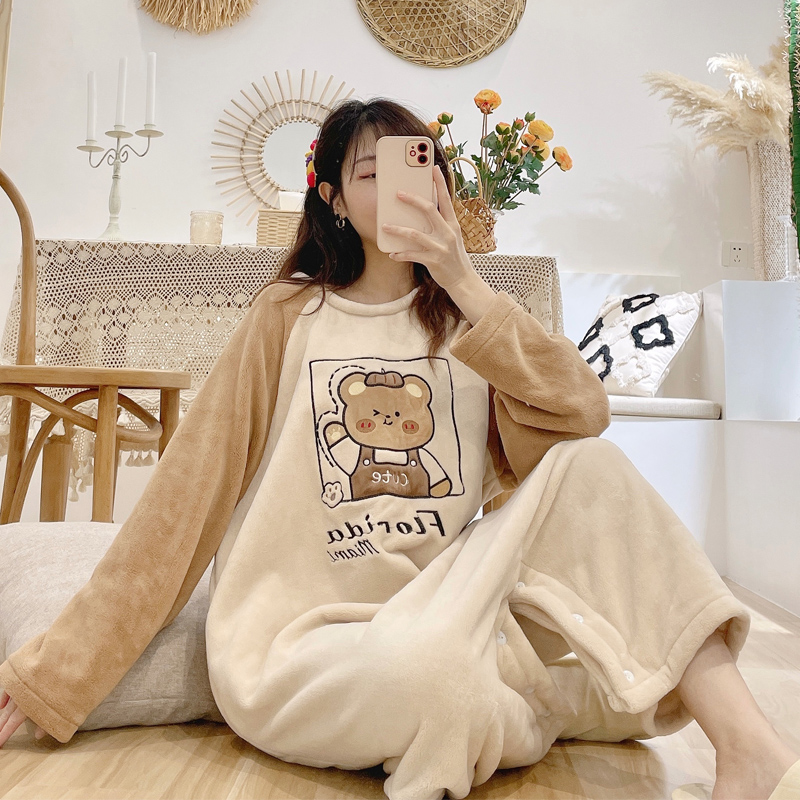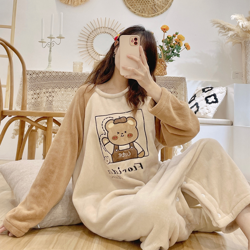 Pajamas Woman Autumn Winter Warm Thickening Coral Suede Anti-Walking Light Even Body Pants Cute Sweet students Relaxed Home Clothes