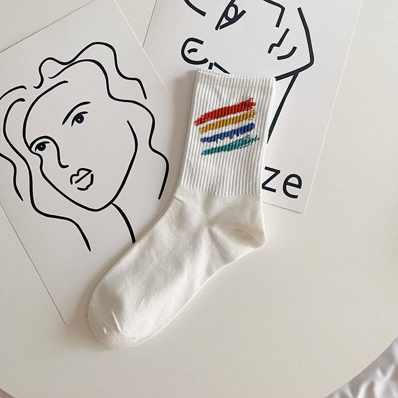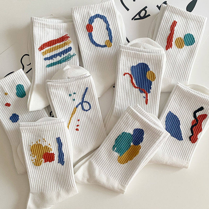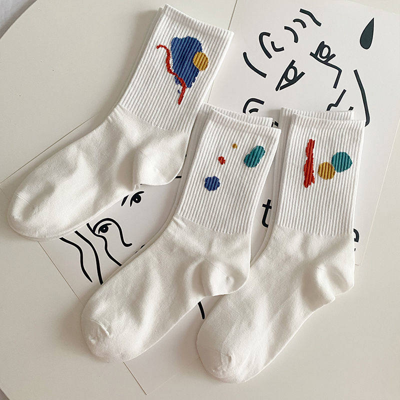 White Long Sox Children's Korean version of the cylinder Chains Chains 100 hitch Socks Doodle Minimalist Autumn Winter Style Academy Wind Long Barrel-Taobao