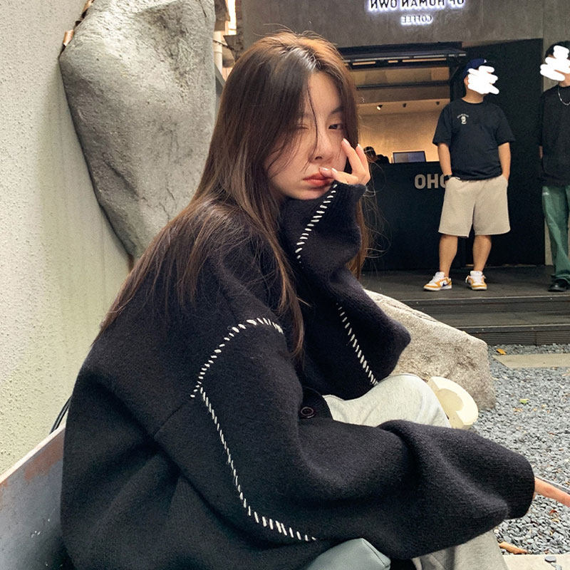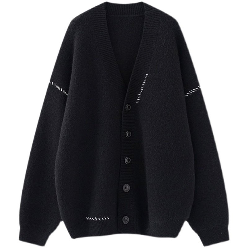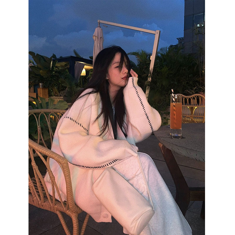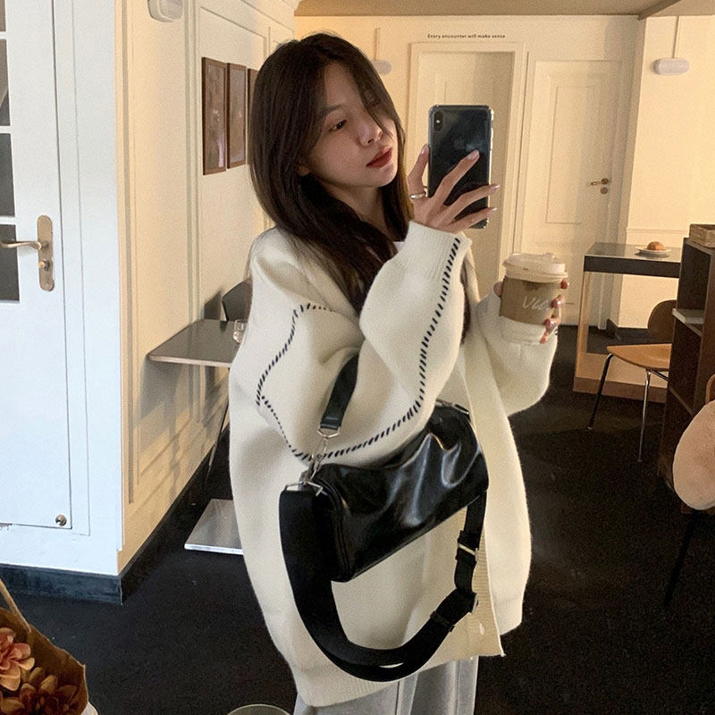 2022 autumn and winter new white sweater knitted cardigan coat female Korean version loose outer wear lazy wind top tide