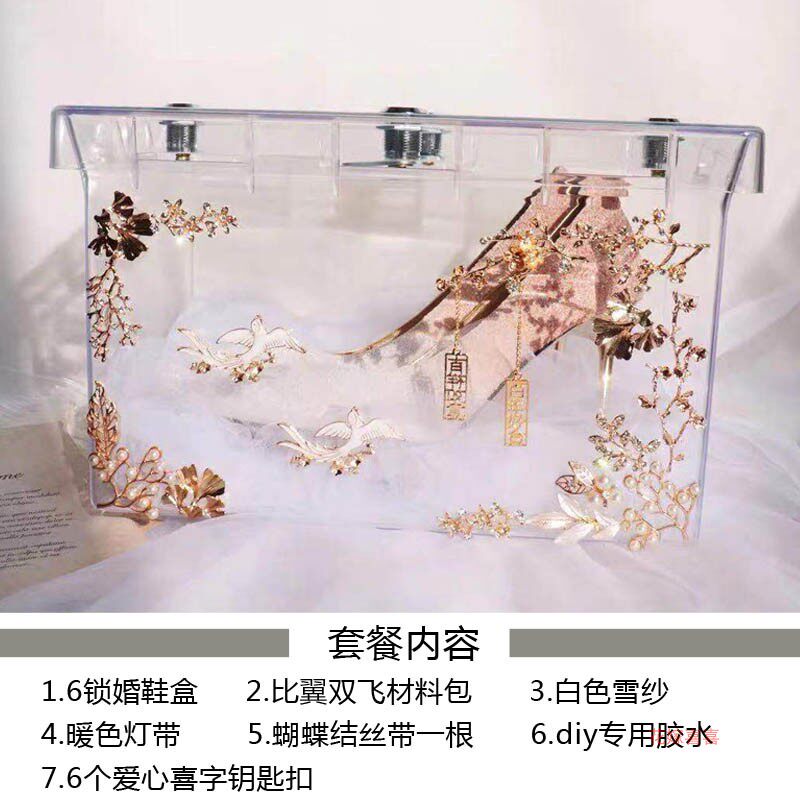 Hide Wedding Shoestring Lock Theorizer Transparent Acrylic Shoe Box Diy Decoration Send Bride Gift to pick up the pro-traffic jam Little Game