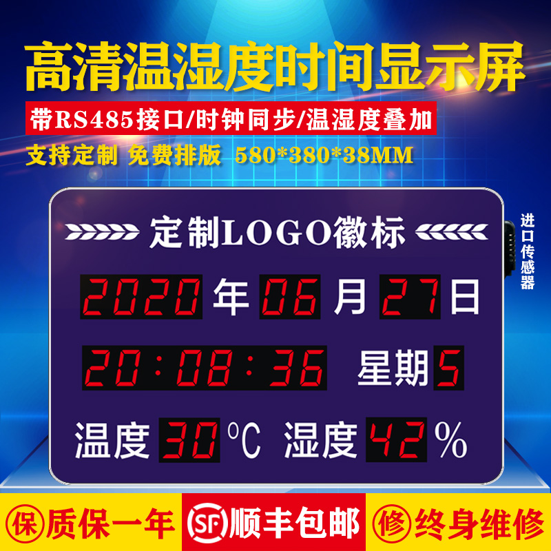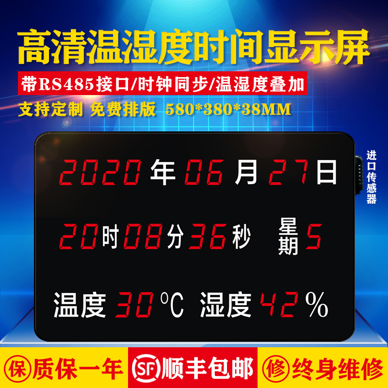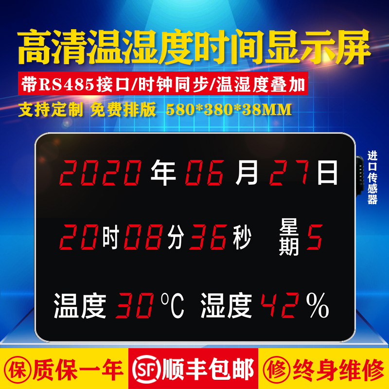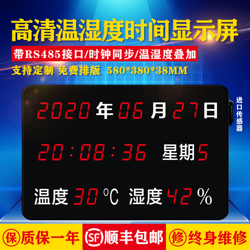 LED high-definition temperature and humidity time display connects Haikang heaven and earth great power host RS485 communication superposition