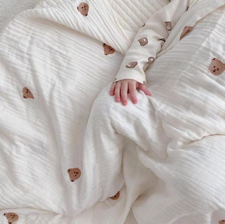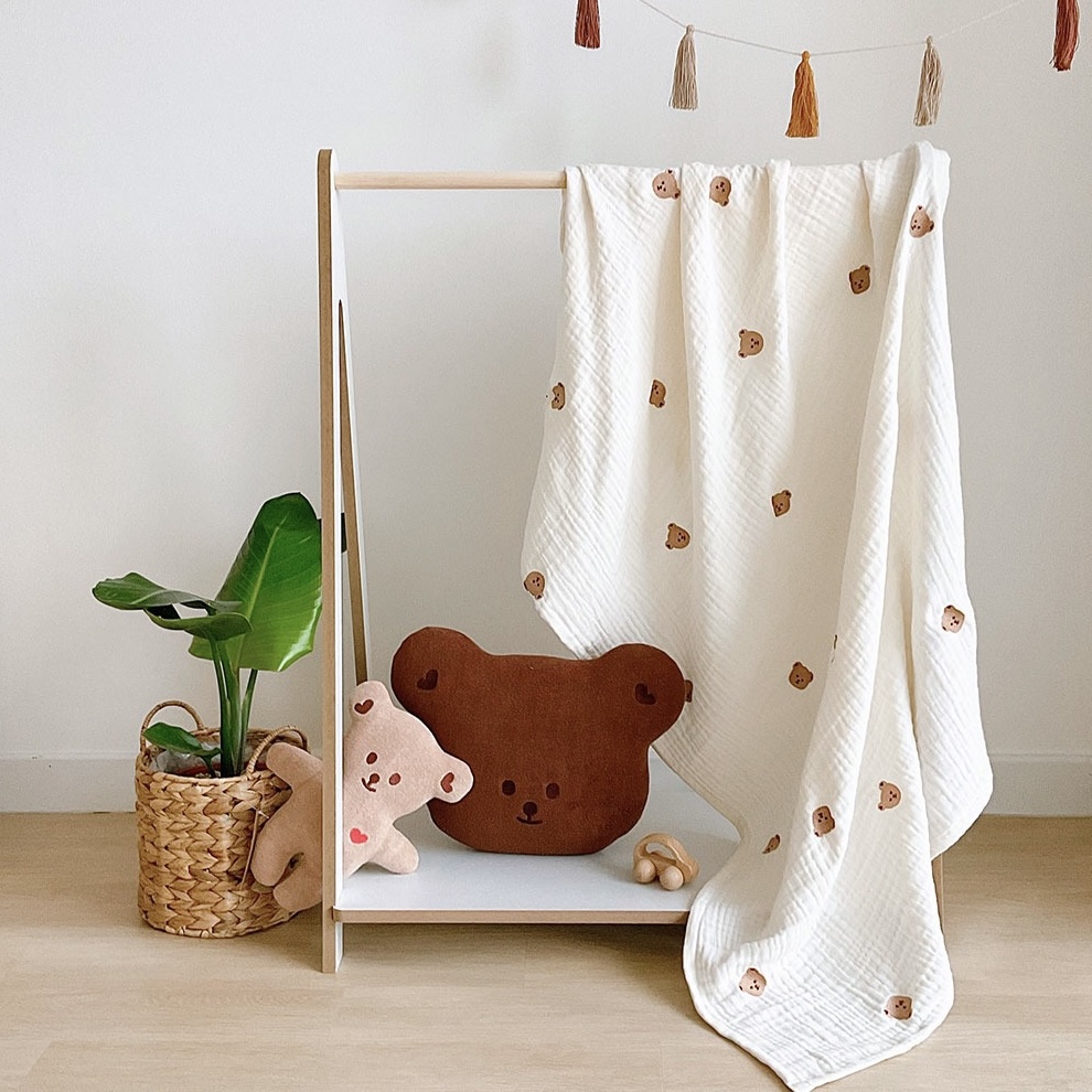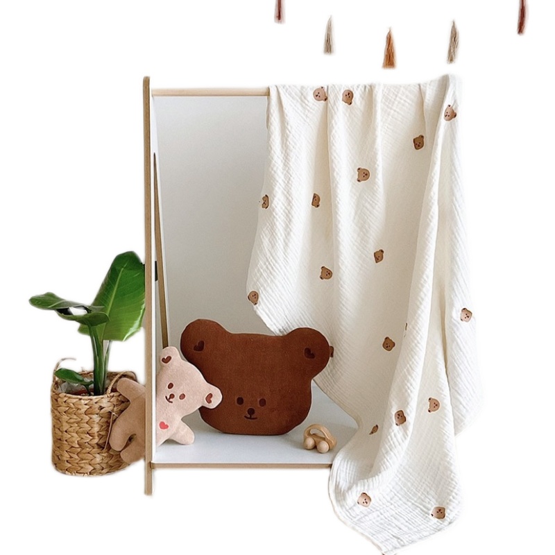 ♥Non-refundable in Korea, mind to shoot ♥Bear Bear Embroidery|Tulip Rabbit on Gauze Blanket|Tulip Embroidery on Gauze Blanket|Olive Embroidery on Gauze Blanket|Gauze Blanket