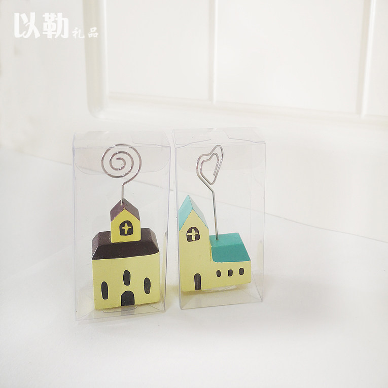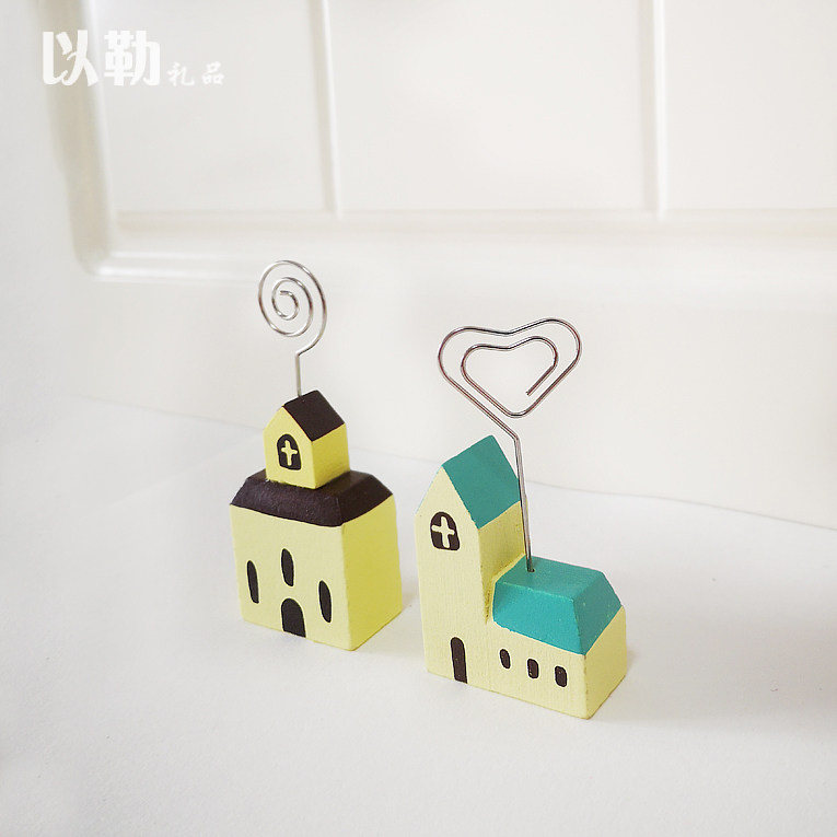 Ele cartoon wooden photo clip business card clip church house desktop decoration base creative Christmas gift