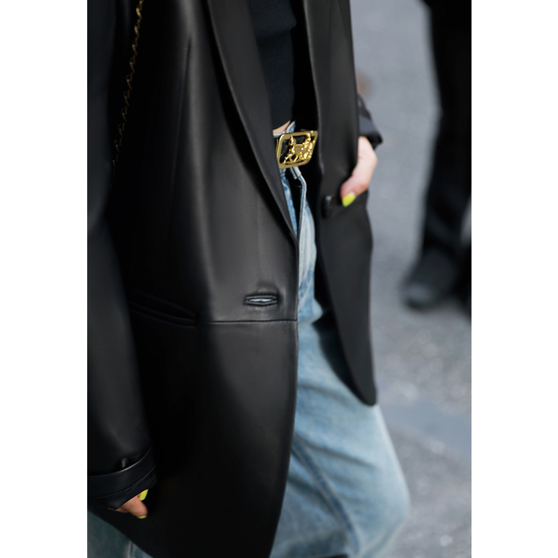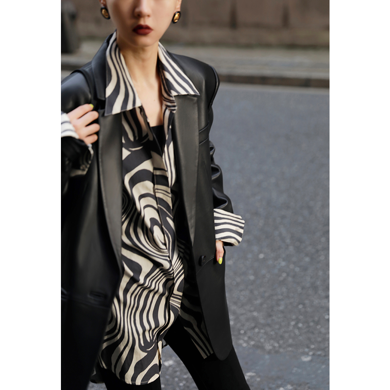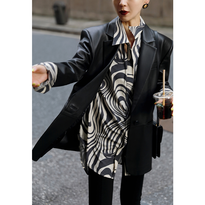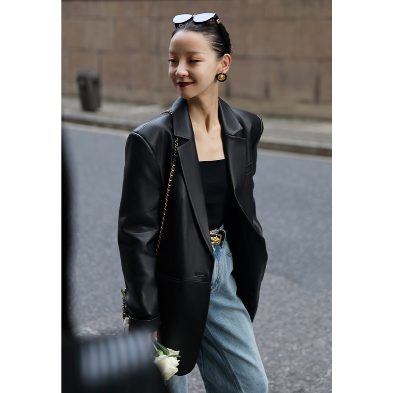 Mogas classic wear Wannian counter 1w high luxury sheepskin profile shoulder pad casual leather suit jacket women